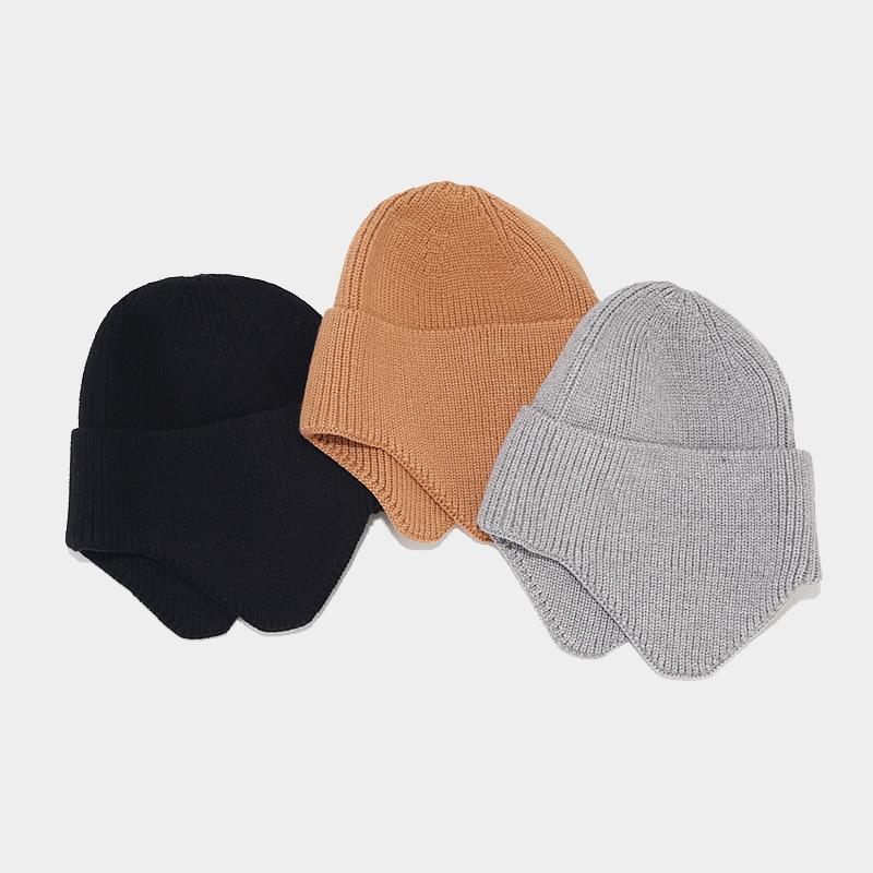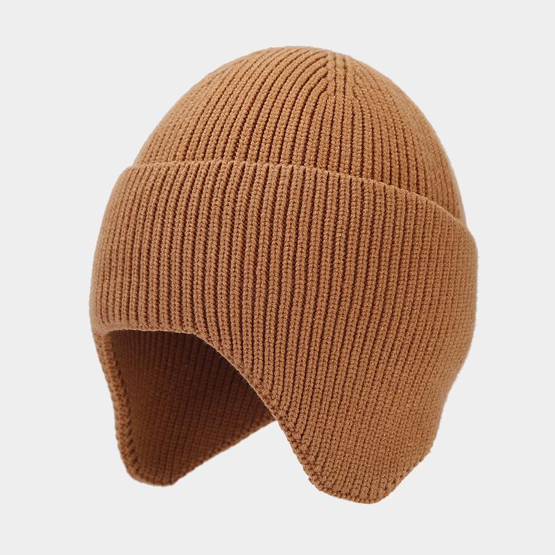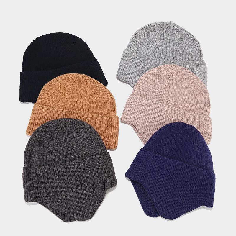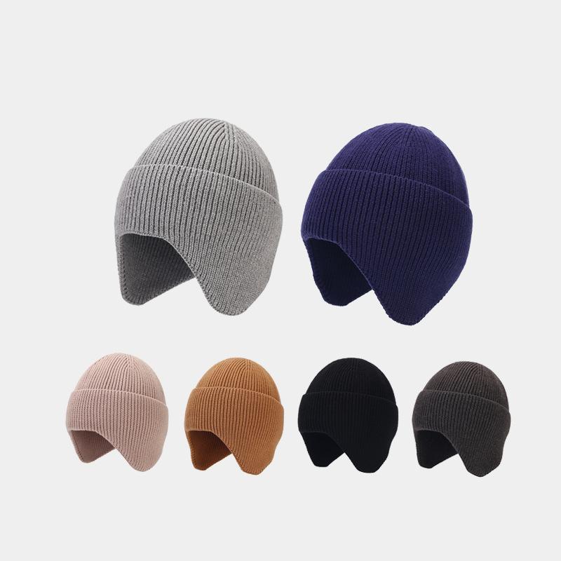 Otoño e Invierno nuevo gorro de punto con protección para las orejas a prueba de frío para exteriores, hilo hilado con núcleo, cúpula, gorro con protección para las orejas, hombres y mujeres, gorro sencillo de color sólido