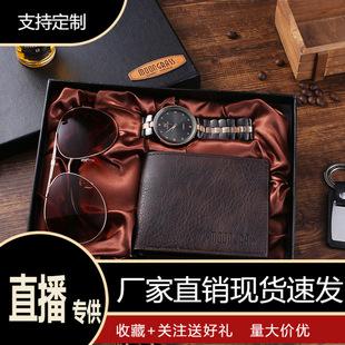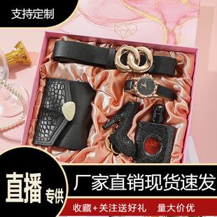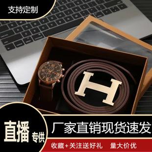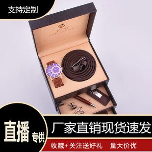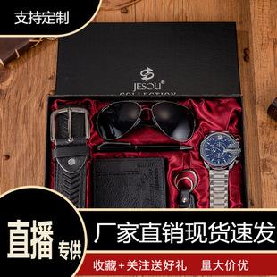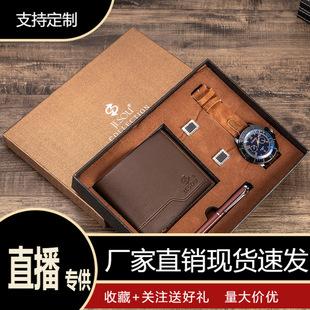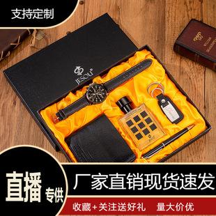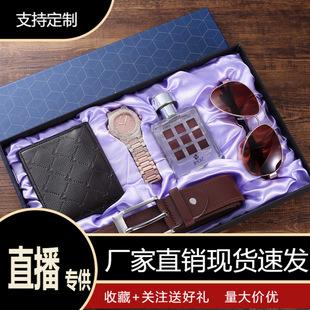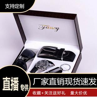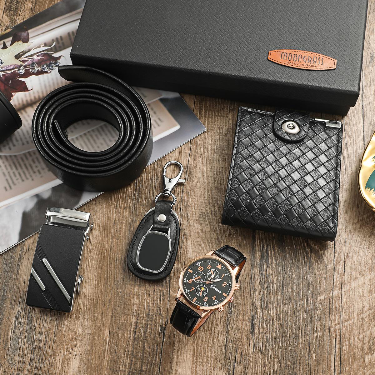 Set de Regalo de Reloj para Hombre Regalo de Vacaciones Cumpleaños Cartera Cinturón Llavero 5 Piezas/Set Caja de Regalo