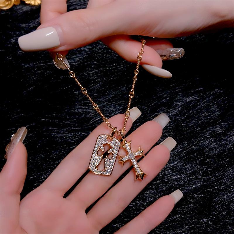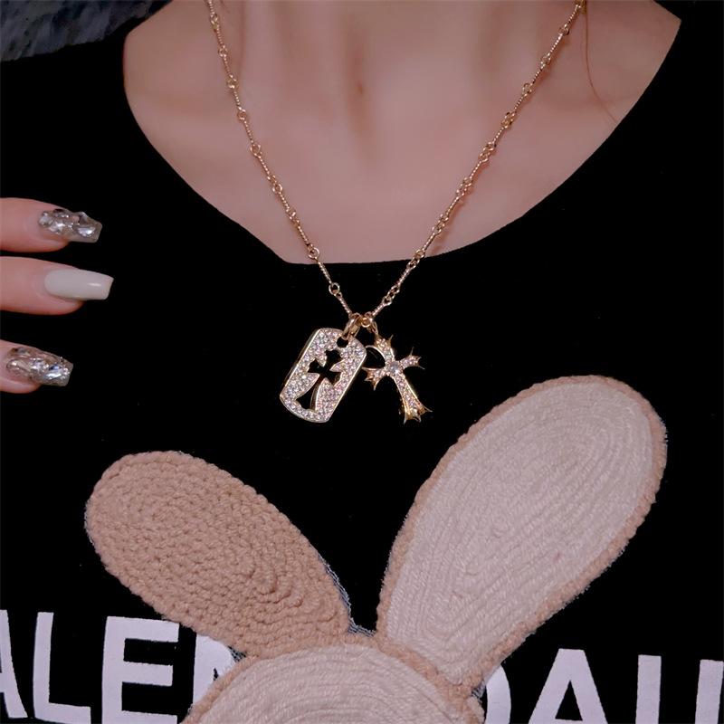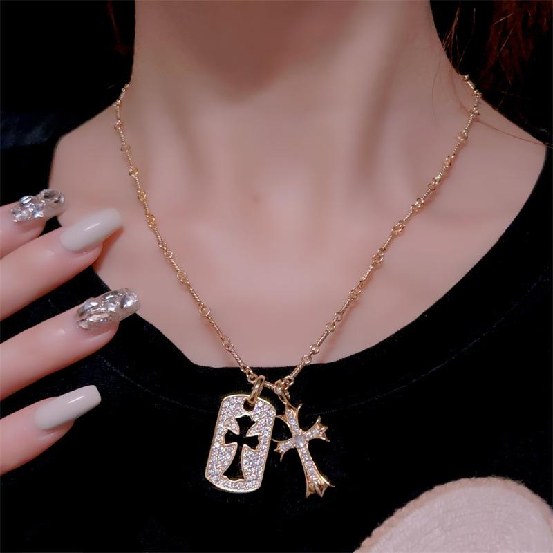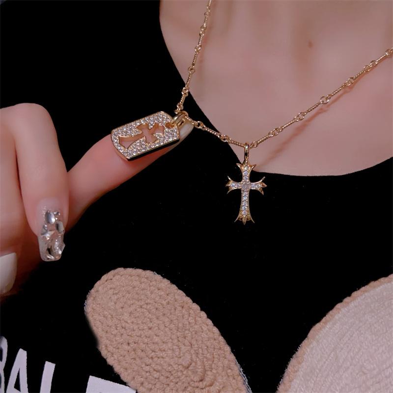 Collar con colgante de cruz hueca para mujer, exquisita cadena para clavícula, diseño de alta gama, collar popular en línea, elegante y combinable