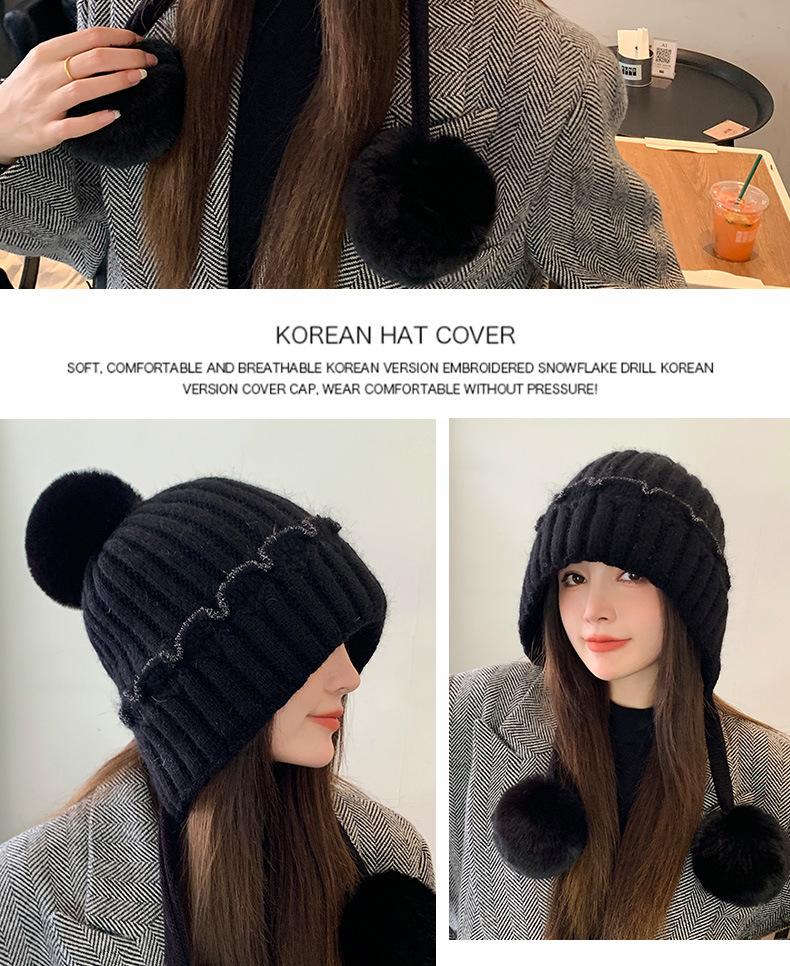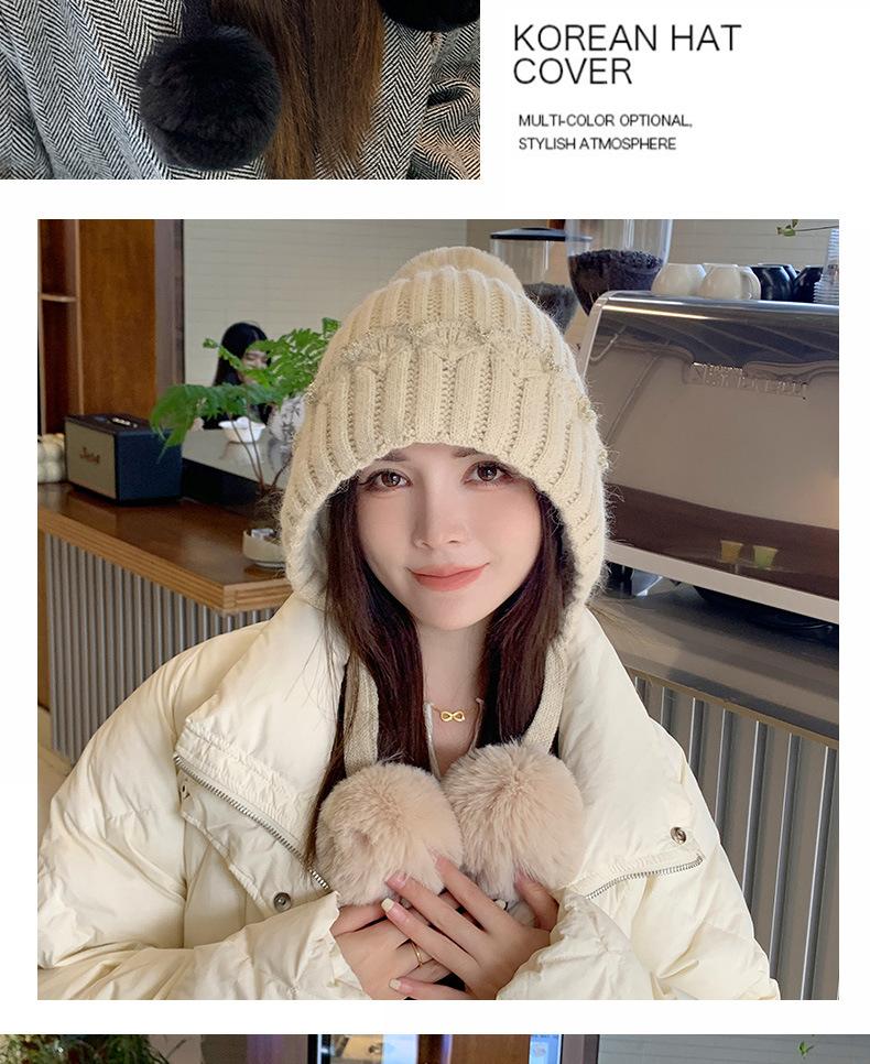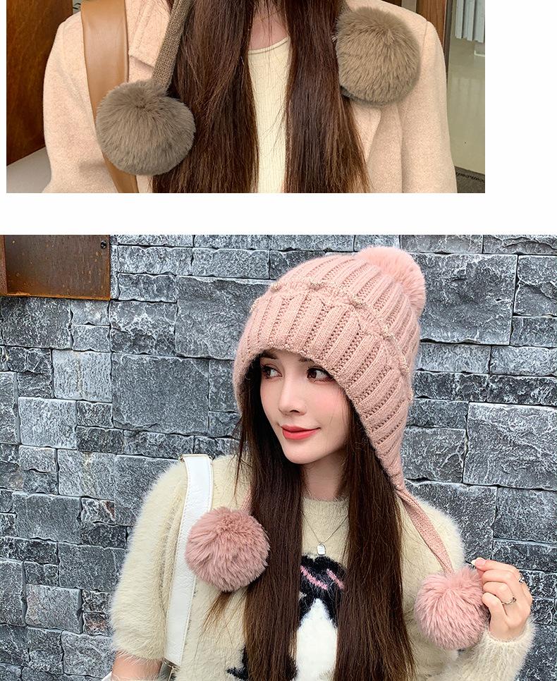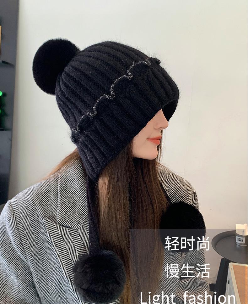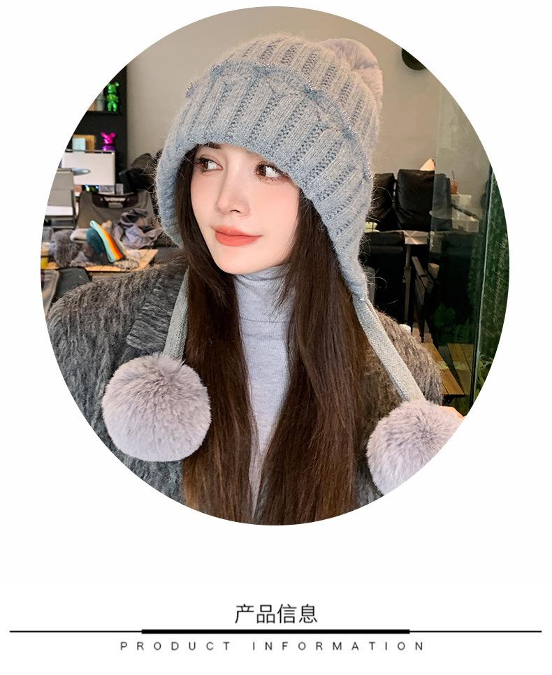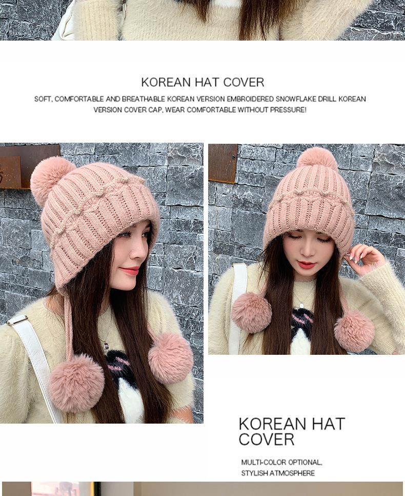 Compra Gorro de lana con forro polar de doble capa y protección auditiva a prueba de frío para mujer, de piel de conejo, tejido a mano, cálido, para otoño e invierno, estilo Lei Feng, moda coreana. al por mayor en Joom.pro