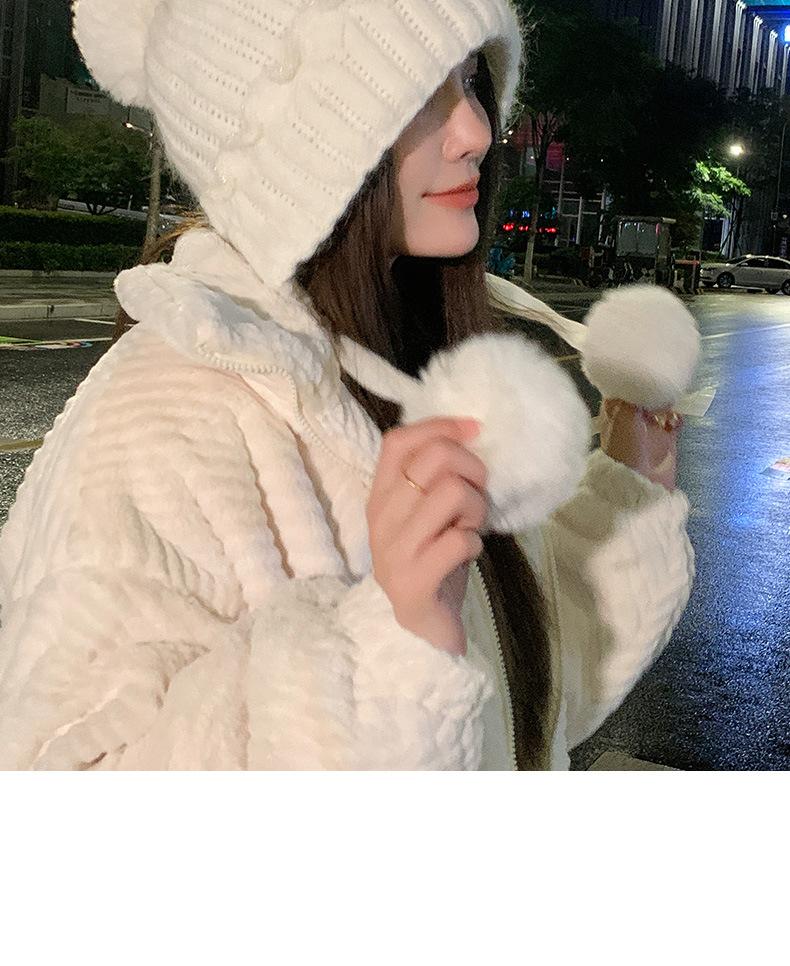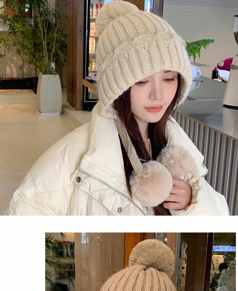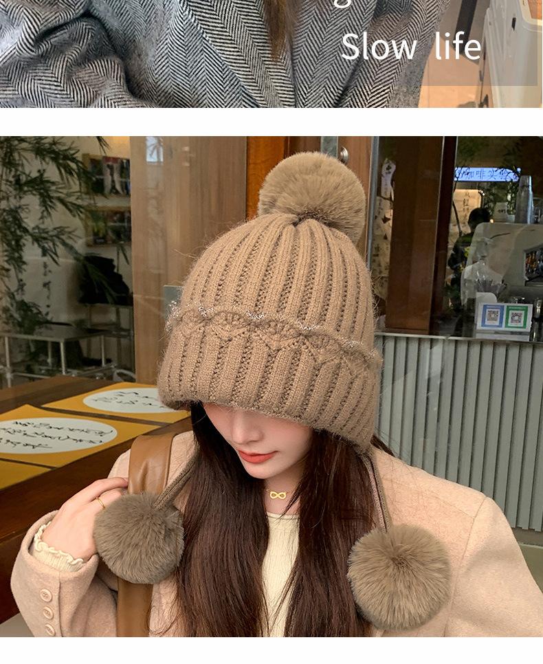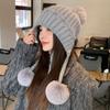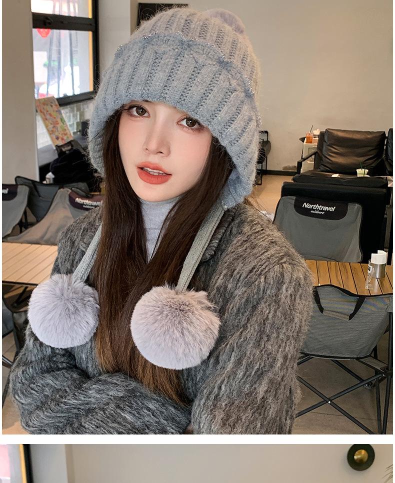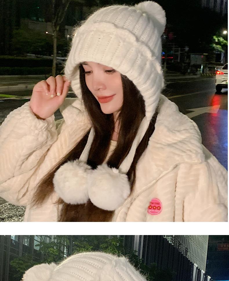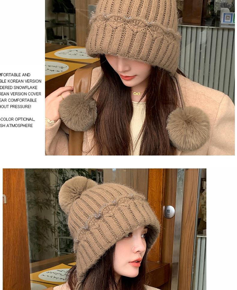 Compra Gorro de lana con forro polar de doble capa y protección auditiva a prueba de frío para mujer, de piel de conejo, tejido a mano, cálido, para otoño e invierno, estilo Lei Feng, moda coreana. al por mayor en Joom.pro