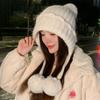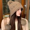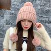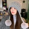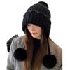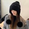 Gorro de lana con forro polar de doble capa y protección auditiva a prueba de frío para mujer, de piel de conejo, tejido a mano, cálido, para otoño e invierno, estilo Lei Feng, moda coreana.