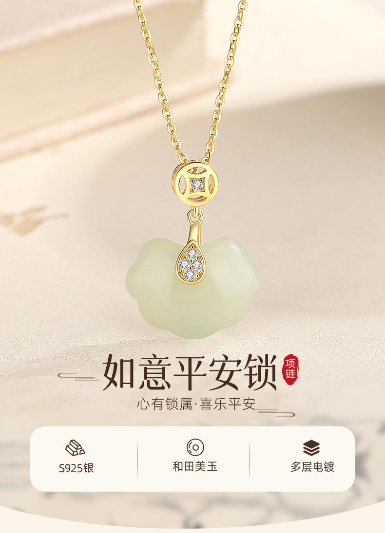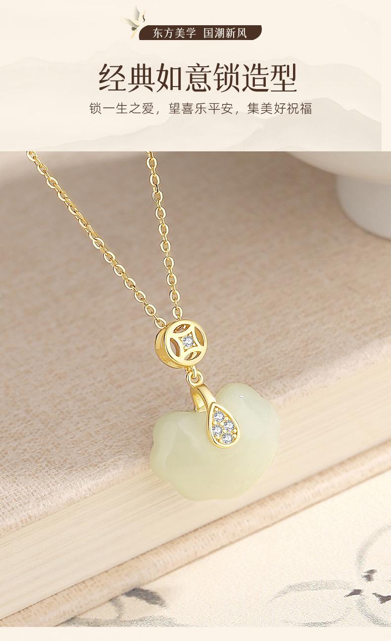 Collar con cierre de seguridad Tichiya de estilo real Ruyi para mujer, plata de ley S925, nuevo estilo chino, nicho de red, joyería de jade Hetian rojo, moda