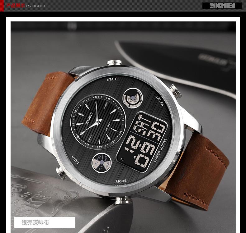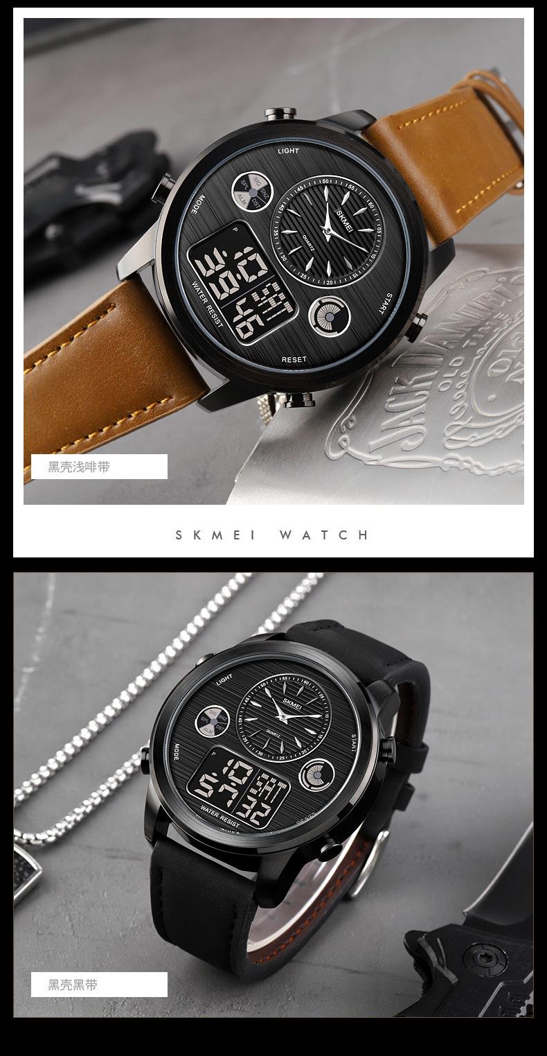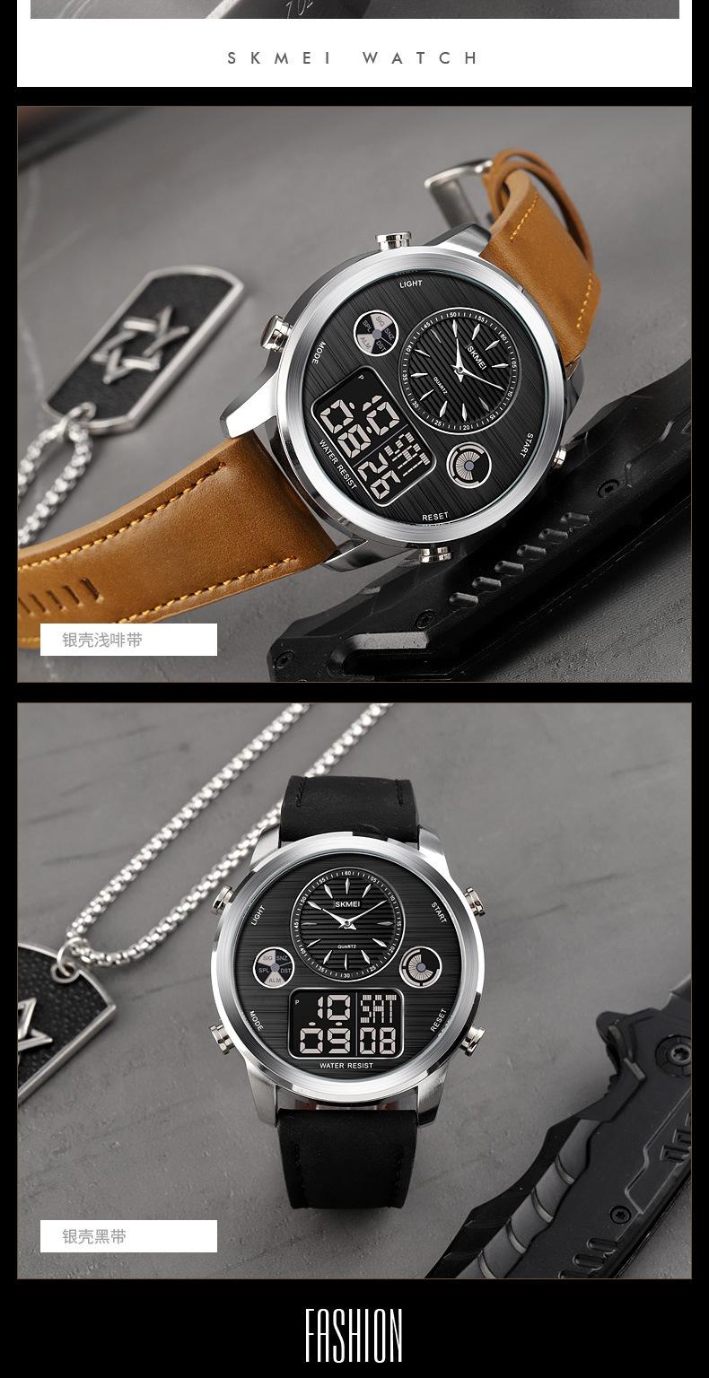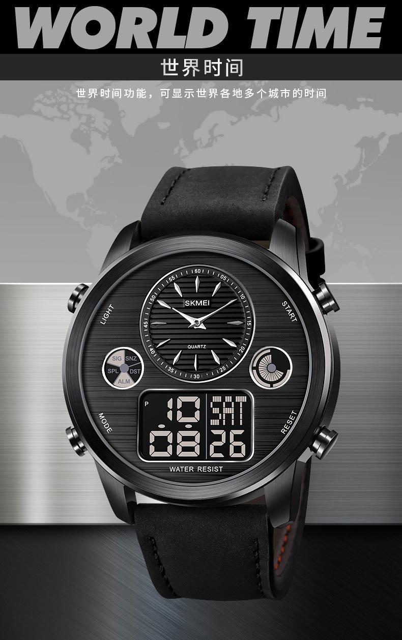 Timely Beauty Moda Reloj Multifunción para Hombre con Esfera Grande Reloj Electrónico de Correa con Doble Movimiento y Doble Pantalla para Estudiante