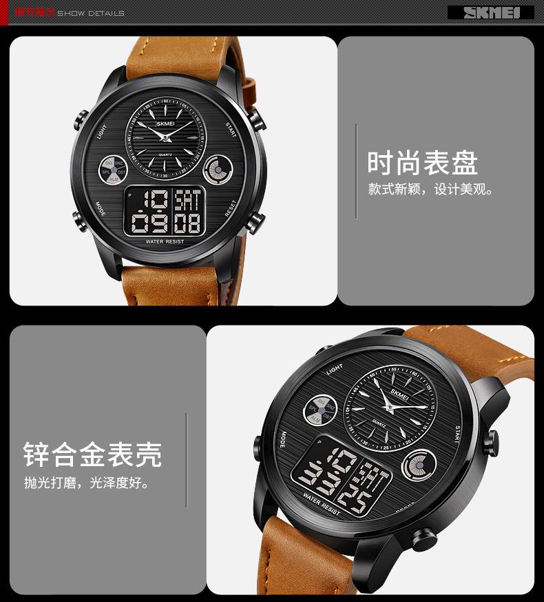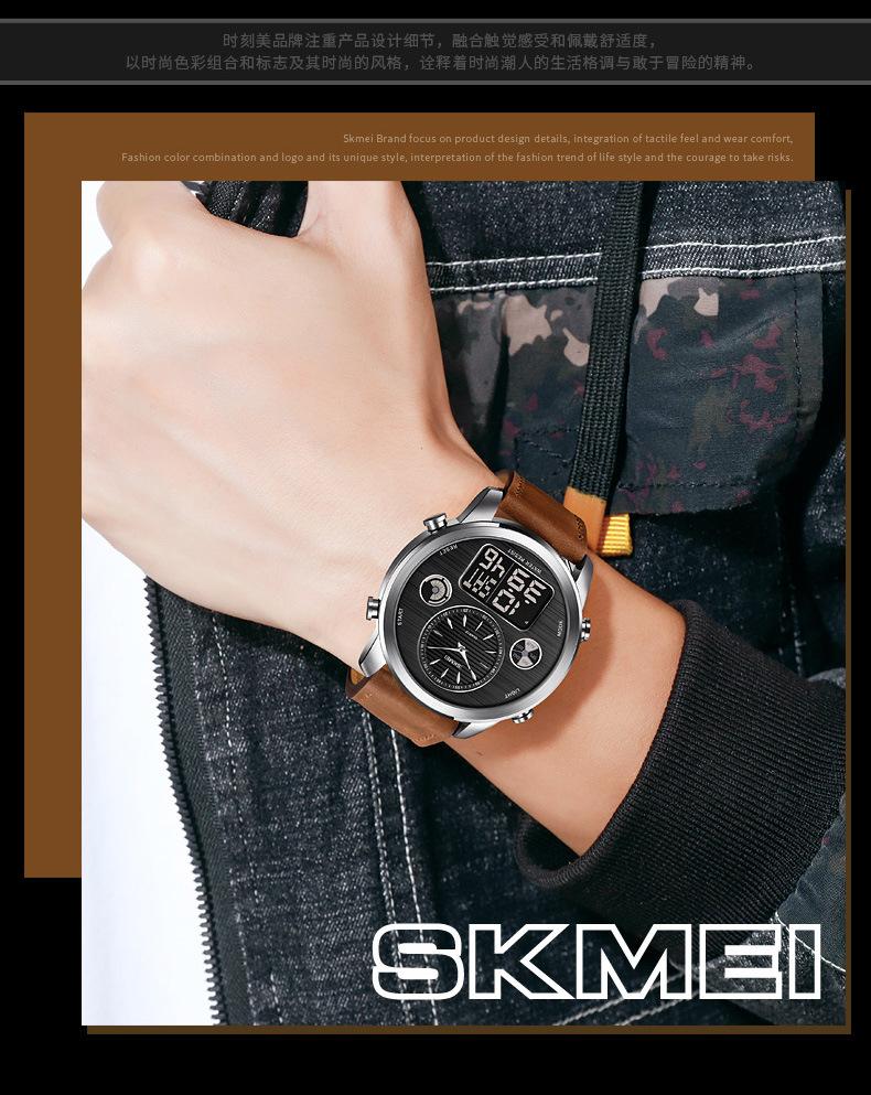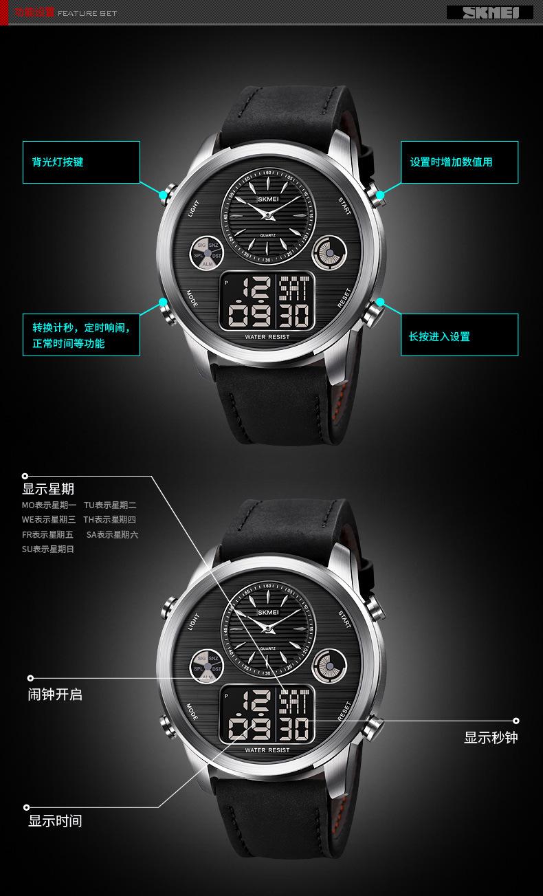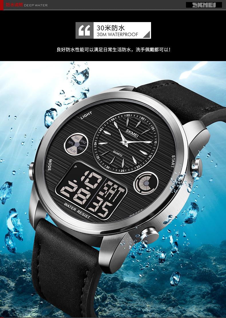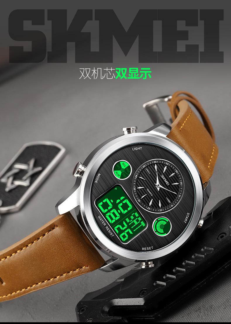 Timely Beauty Moda Reloj Multifunción para Hombre con Esfera Grande Reloj Electrónico de Correa con Doble Movimiento y Doble Pantalla para Estudiante