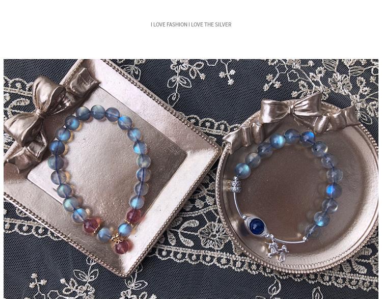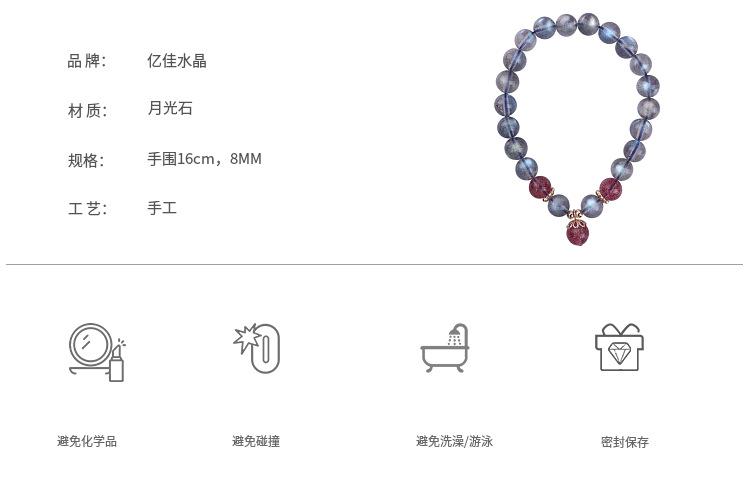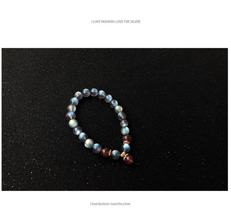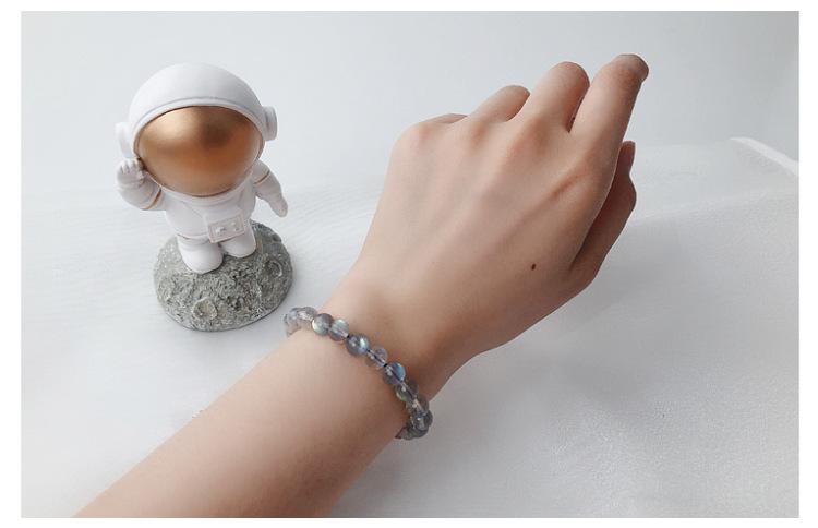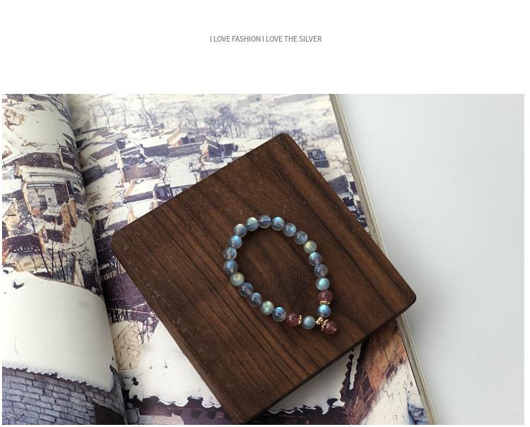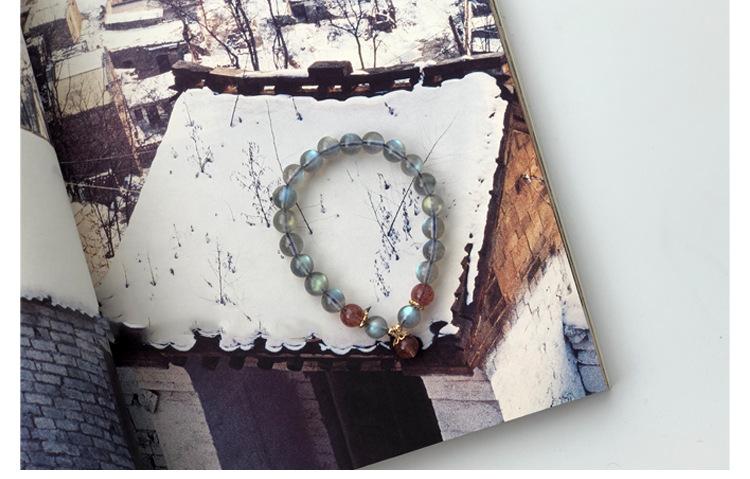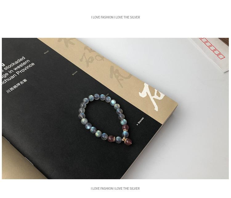Pulsera de Piedra Lunar Gris Natural Cristal de Fresa Simple y Generosa DIY Hecha a Mano Original Regalo para Novia