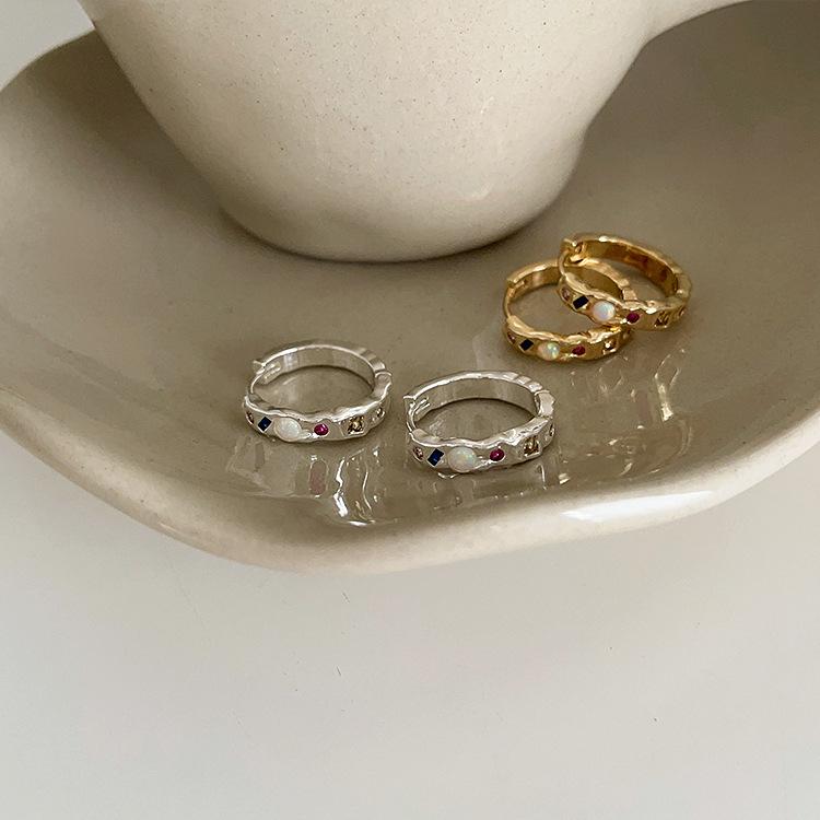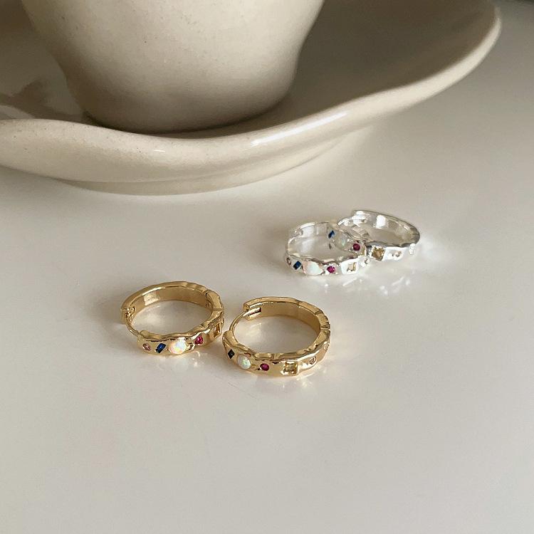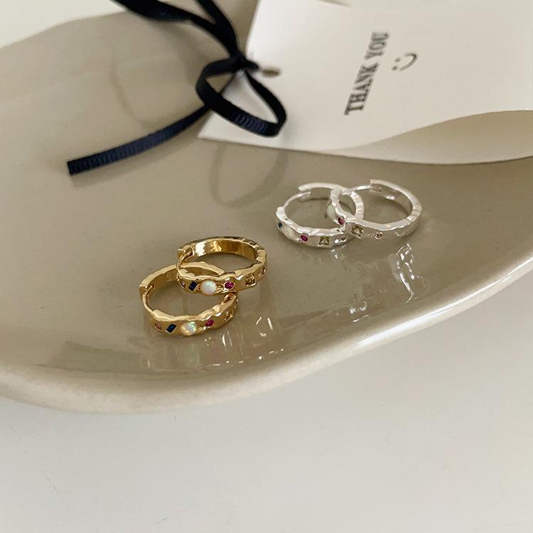 Aretes Irregulares de Metal Colorido con Zirconias para Mujer Coreanos Nicho Retro Elegantes Simples Versátiles