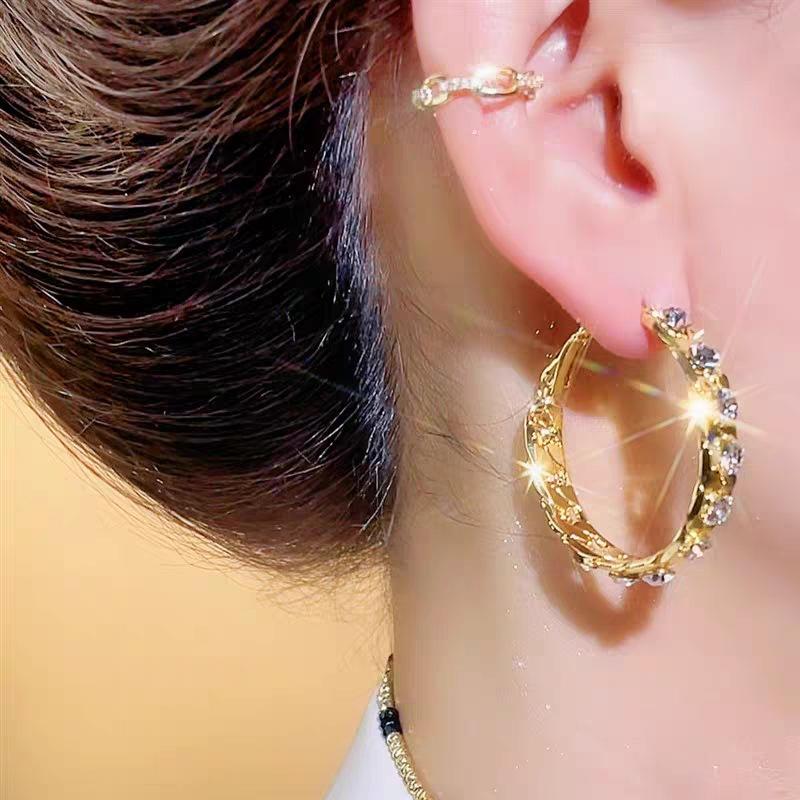 Pendientes de circonita Super Flash para mujer, nuevos pendientes circulares de estilo occidental de alta calidad, ligeros, de lujo, con personalidad y temperamento, pendientes que combinan con todo, al por mayor