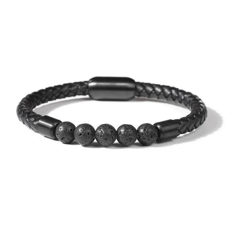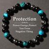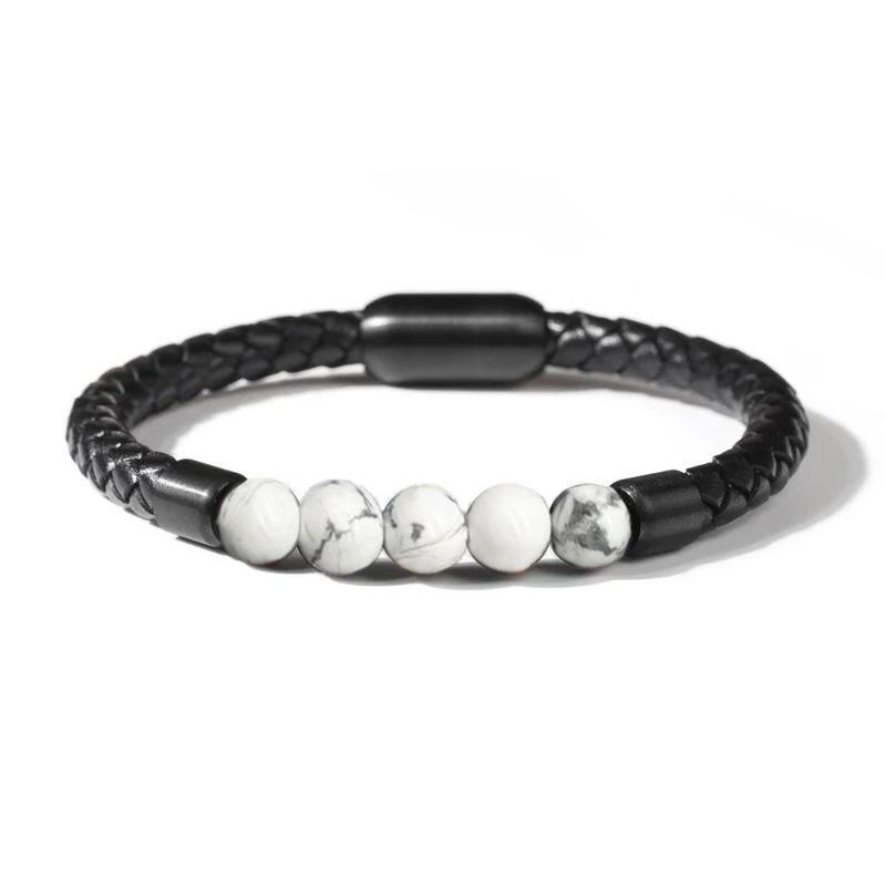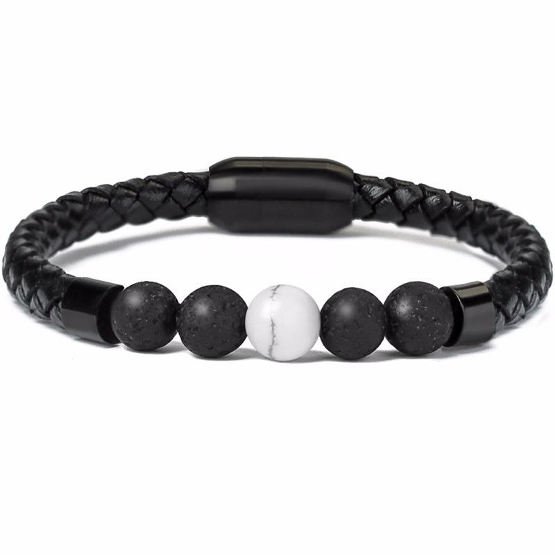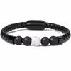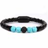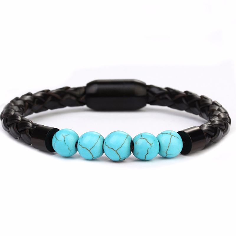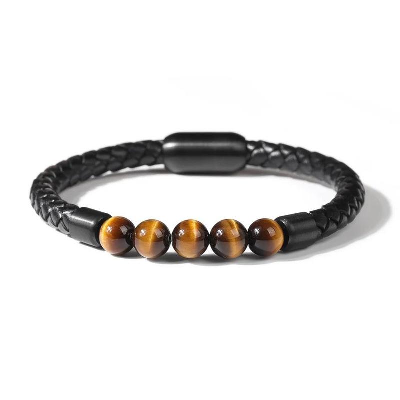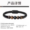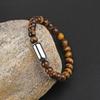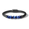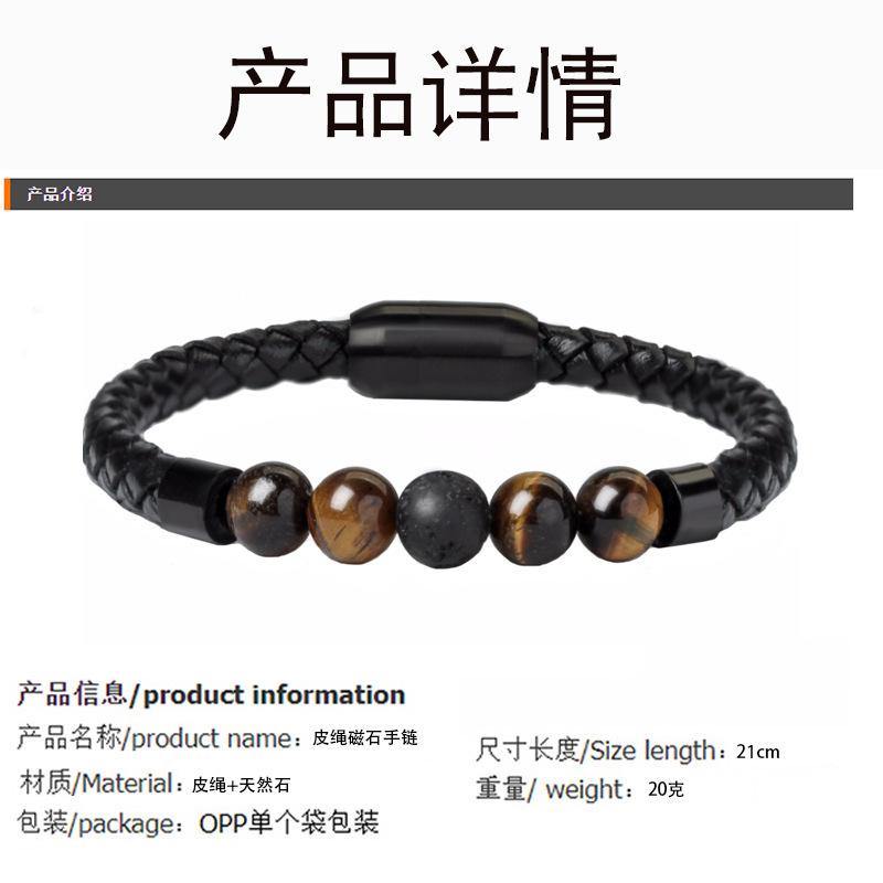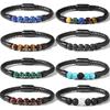 Joyería europea y americana pulsera de cuentas de piedra ojo de tigre colorida de 8 mm color acero inoxidable hebilla magnética pulsera de cuerda de cuero al por mayor