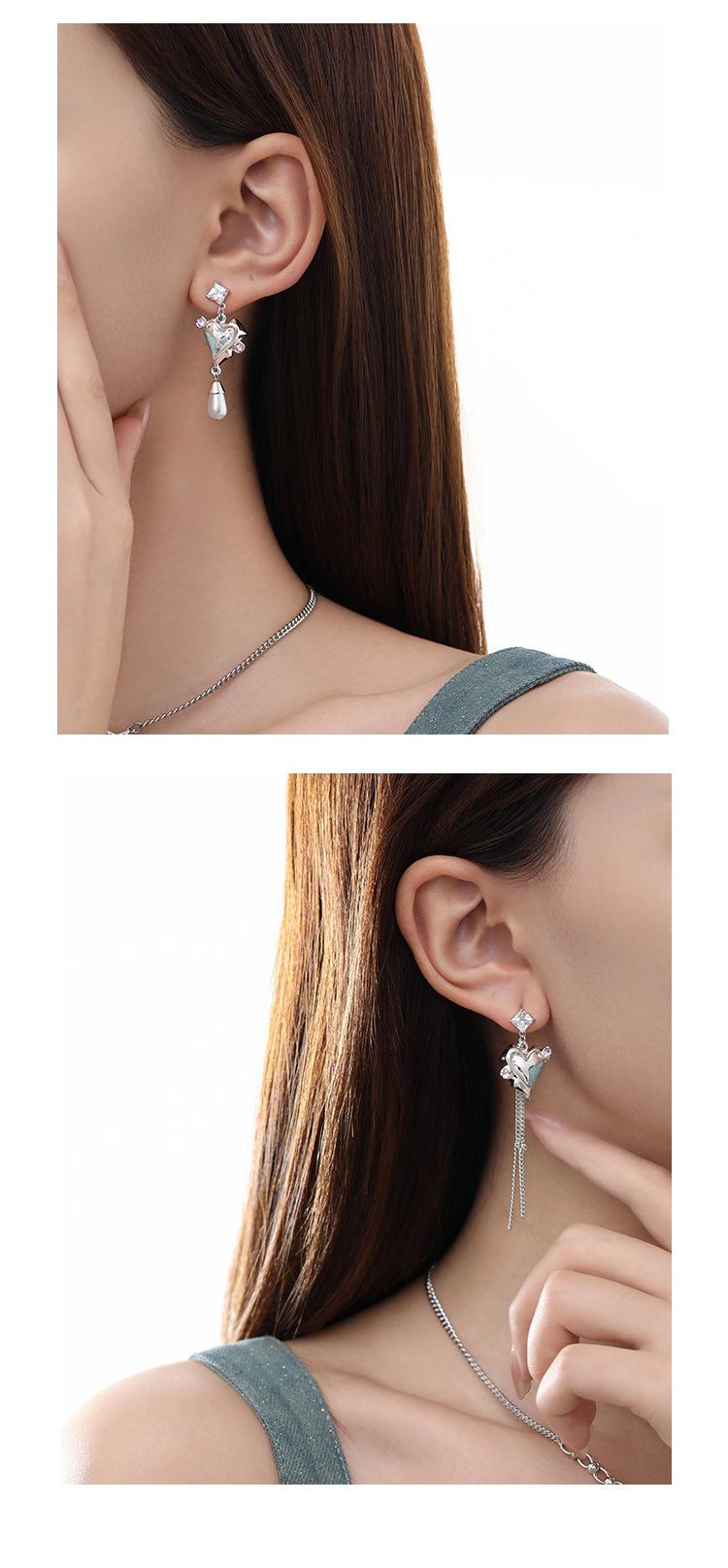 Compra Pendientes románticos de plata 925 con forma de aguja, color azul, con un toque de amor, a la moda, nuevos y frescos, de nicho, con un toque de alta calidad y exquisitos pendientes para mujer. al por mayor en Joom.pro