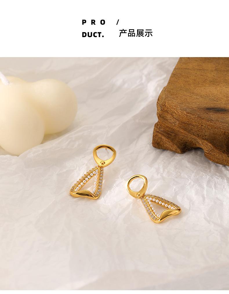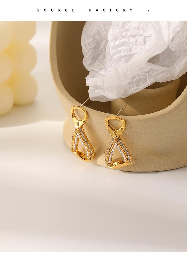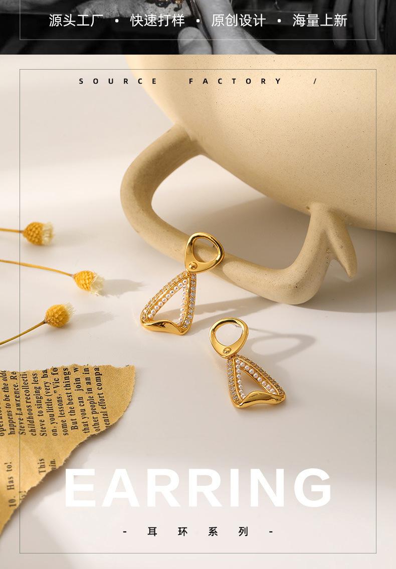 Pendientes de perla con incrustaciones de circonita micro de nuevo diseño, pendientes de aguja de plata con nicho vintage estilo francés retro