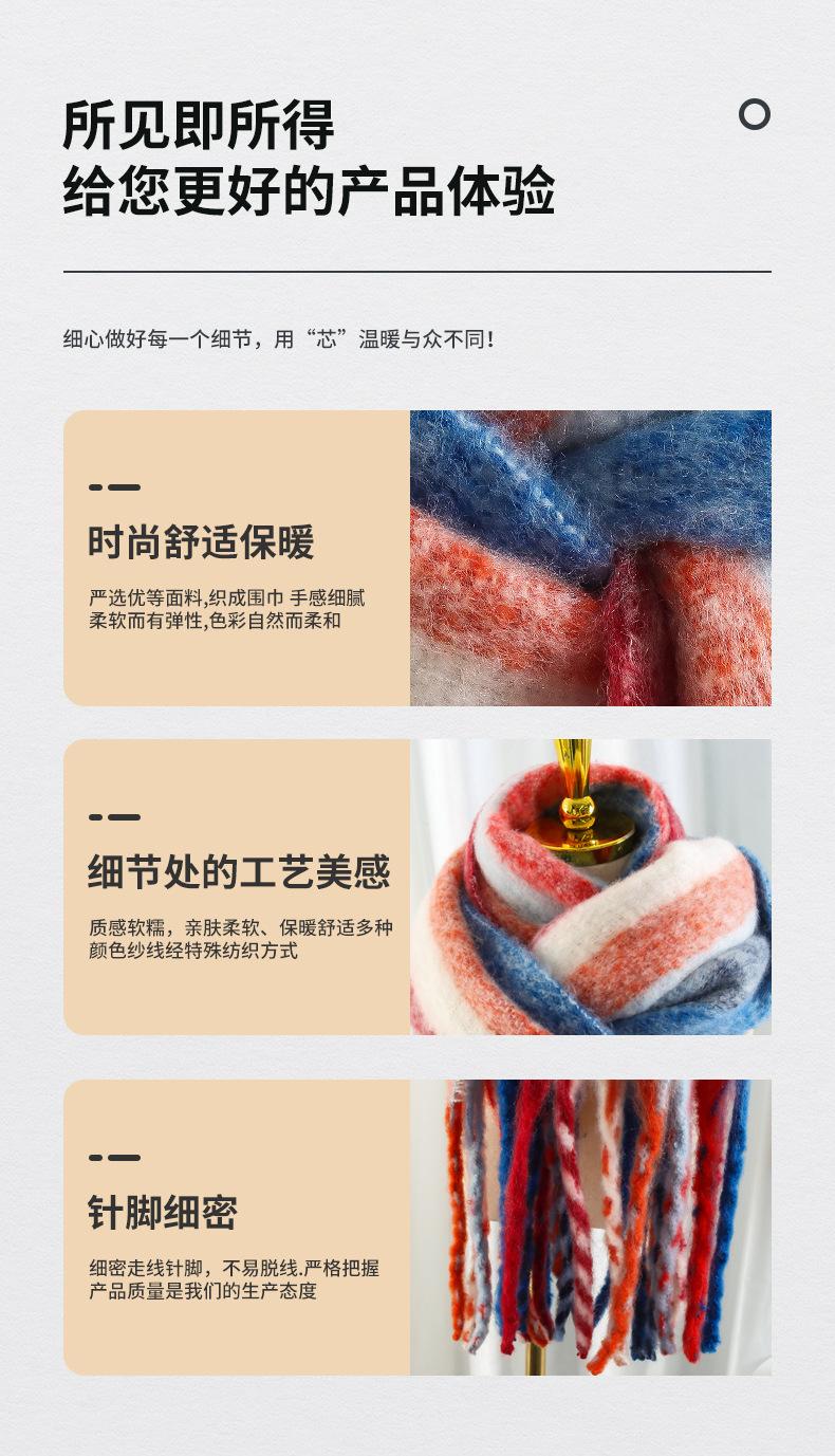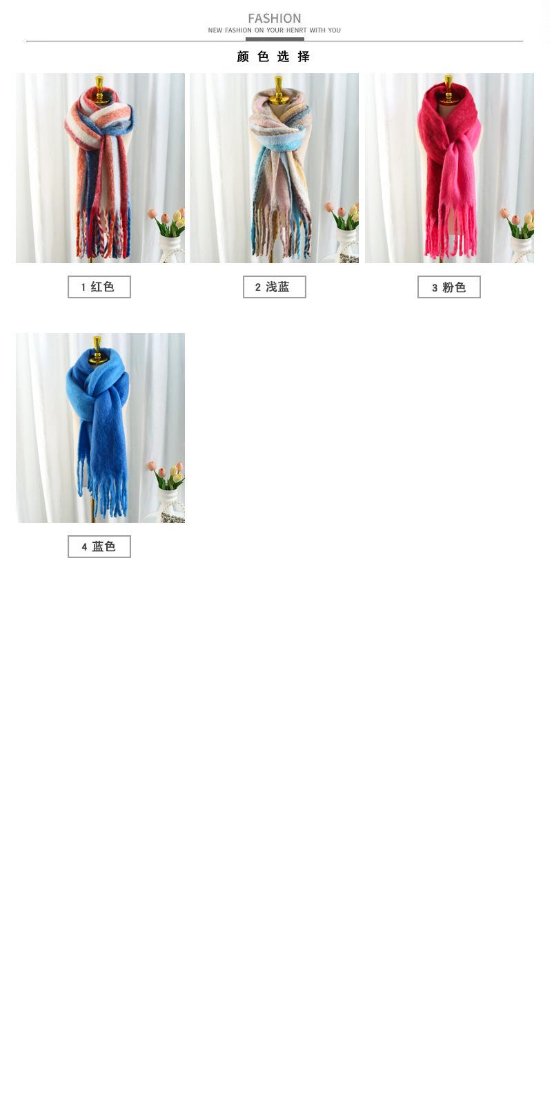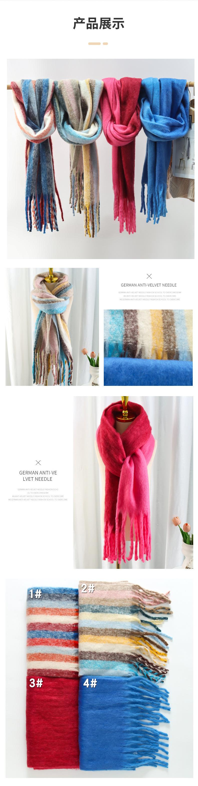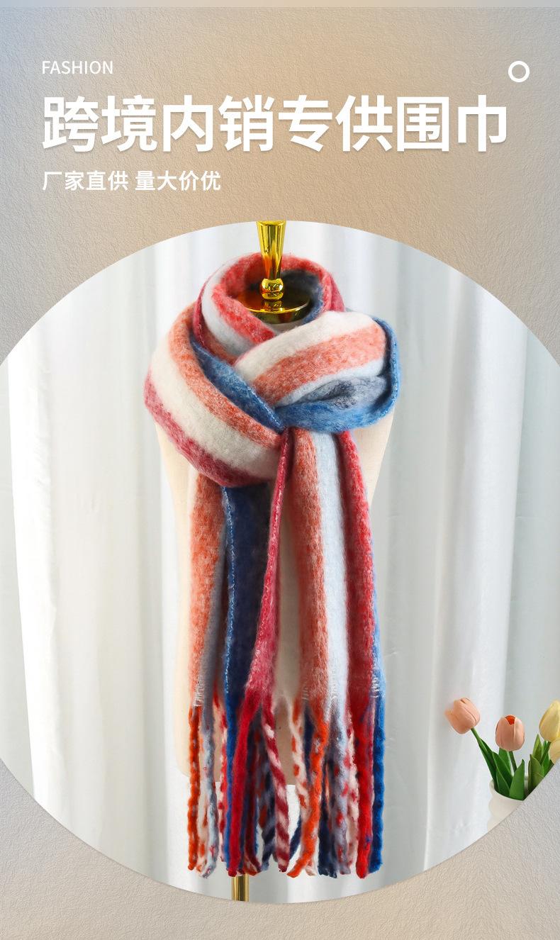 Bufanda de invierno arcoíris con borlas cepilladas, bufanda cálida, mohair engrosado, chal de rayas coloridas, ambiente de pareja