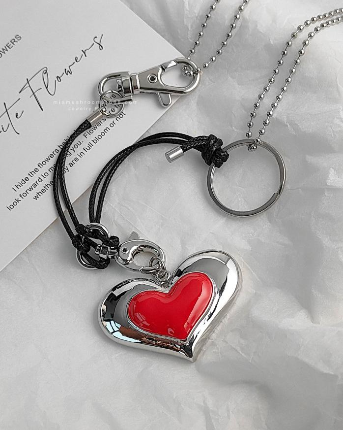 Collar de amor grande con el mismo estilo de celebridad de Internet de Corea del Sur, diseño de metal con sentido del amor, colgante hecho a mano, cadena de lana punk