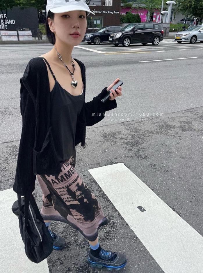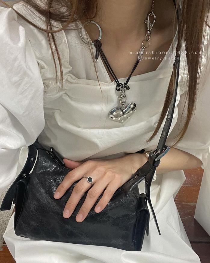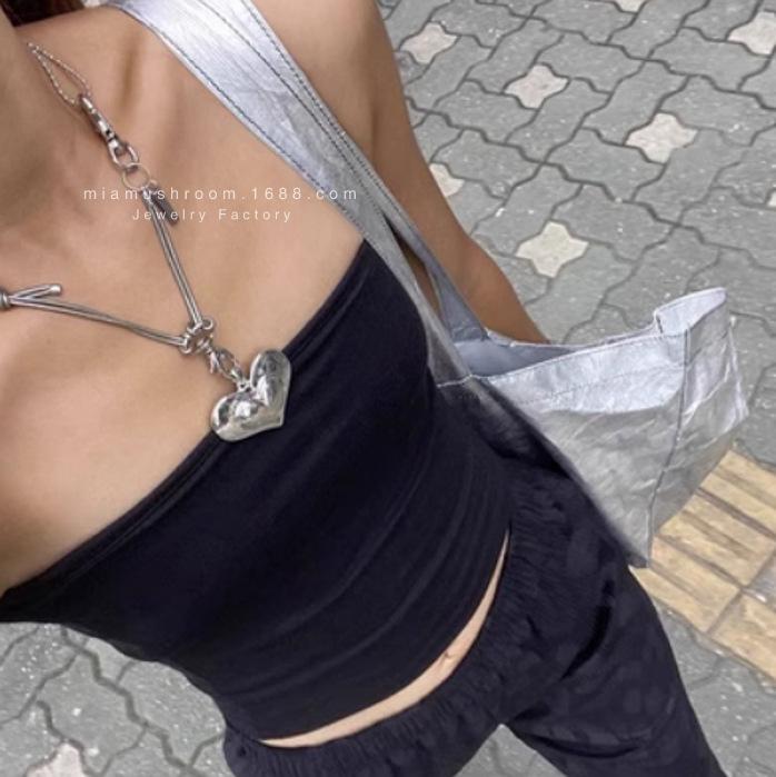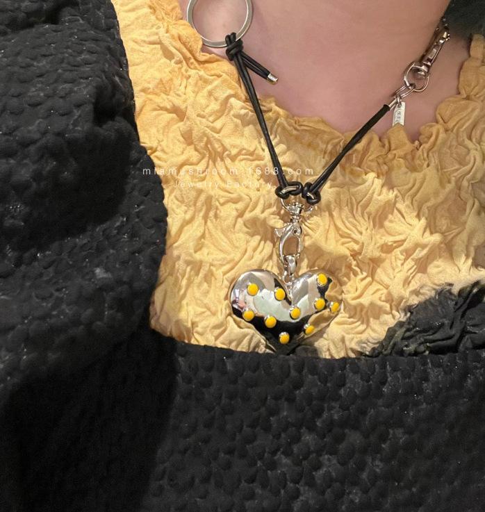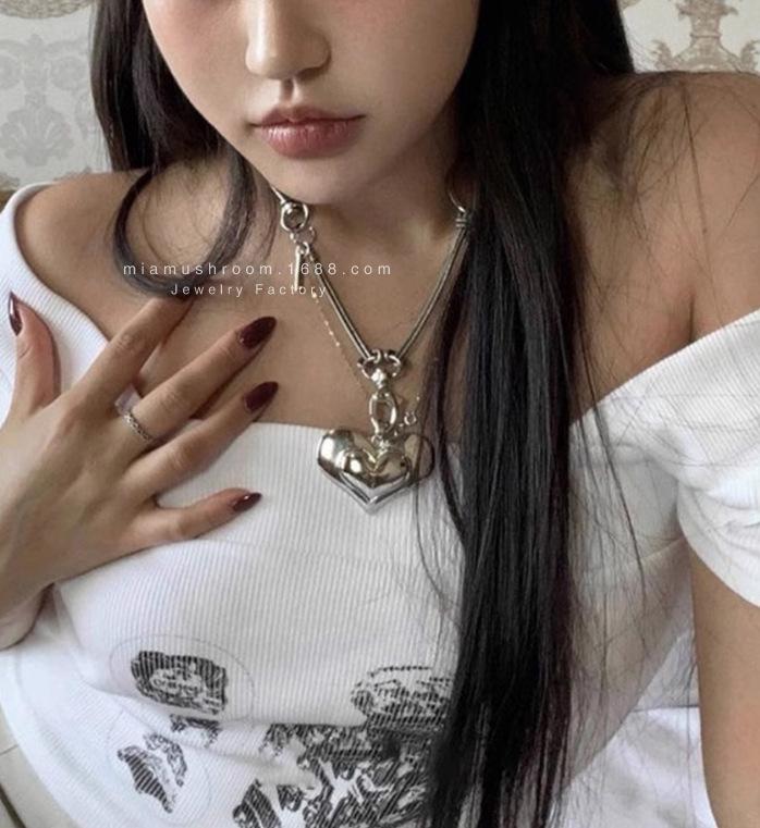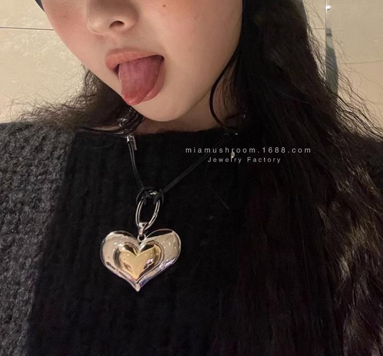 Compra Collar de amor grande con el mismo estilo de celebridad de Internet de Corea del Sur, diseño de metal con sentido del amor, colgante hecho a mano, cadena de lana punk al por mayor en Joom.pro