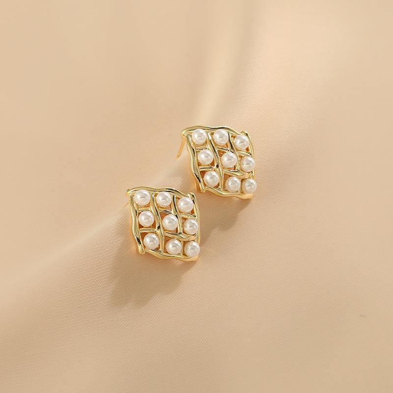 Pendientes geométricos de perlas de diamante para mujer, estilo retro de alta gama, nuevos pendientes únicos de verano, pendientes de lujo ligeros de moda.