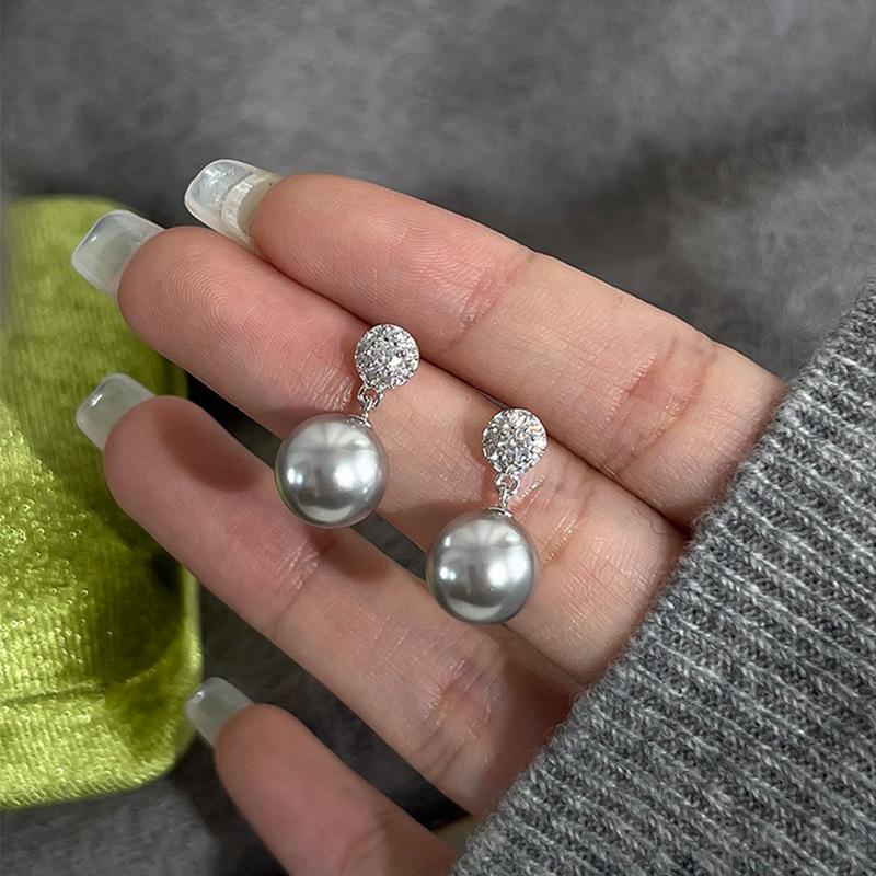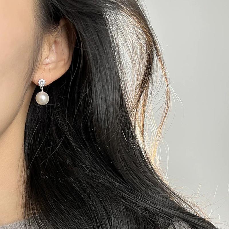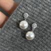 Pendientes de perlas de circón de alta calidad para mujer, pendientes de moda de temperamento versátil simple con personalidad de nicho retro francés