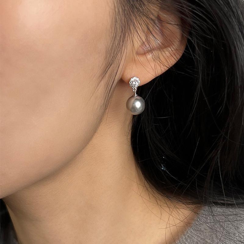 Grey pearl earrings 925 silver plated real gold, White pearl earrings 925 silver plated real gold