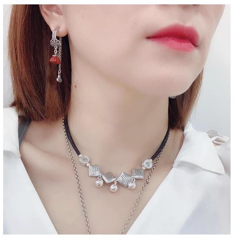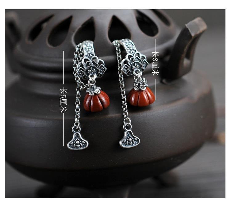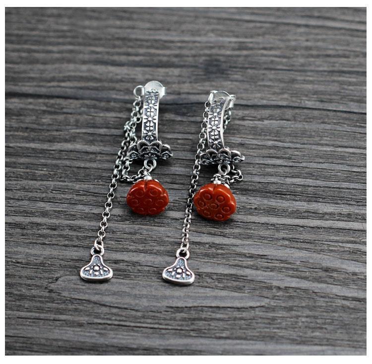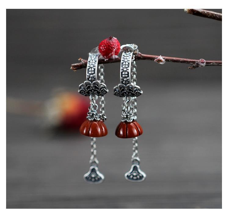Compra Pendientes de botón con borlas de loto, chapados en plata, estilo vintage, largos y exagerados, con diseño de nicho, joyería clásica para las orejas. al por mayor en Joom.pro