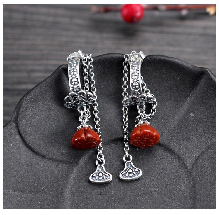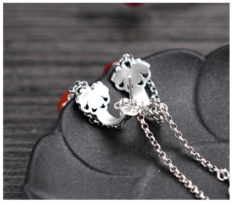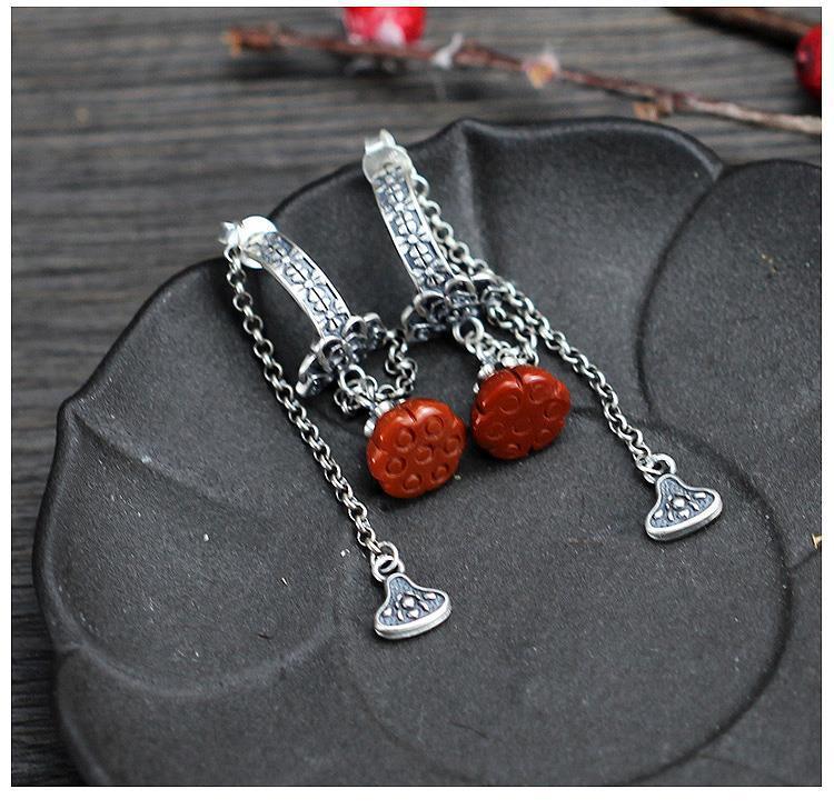 Pendientes de botón con borlas de loto, chapados en plata, estilo vintage, largos y exagerados, con diseño de nicho, joyería clásica para las orejas.
