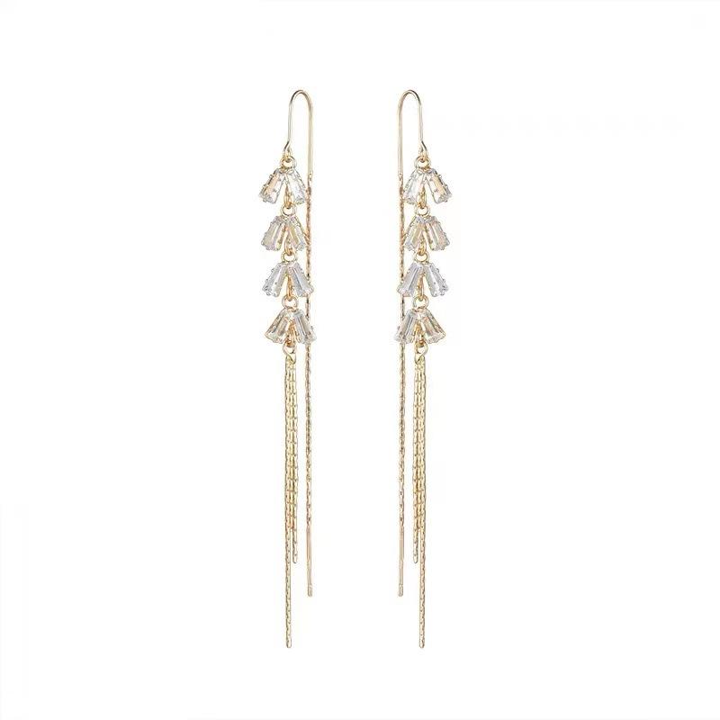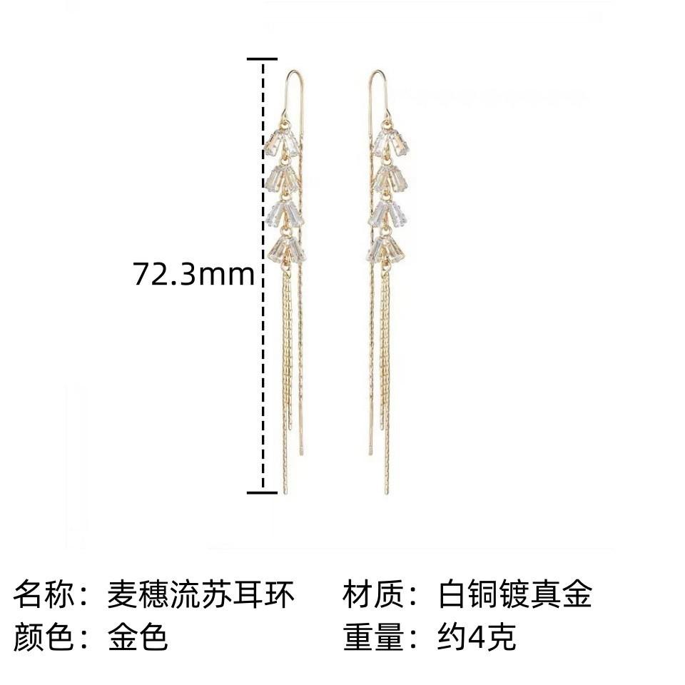 Pendientes de borlas de trigo para mujer, ligeros, de lujo, sencillos, nuevos pendientes largos de circonita con forma de hoja, elegantes, de alta gama, 2023