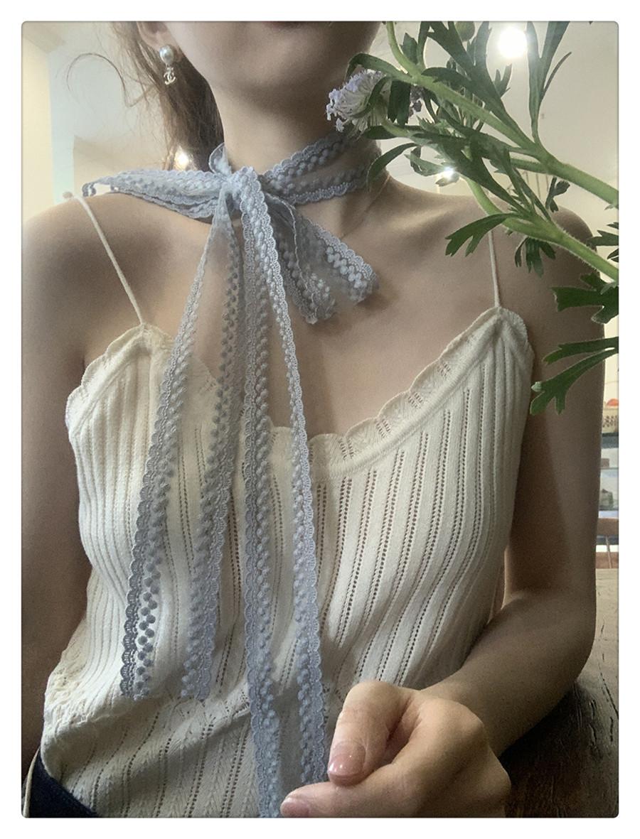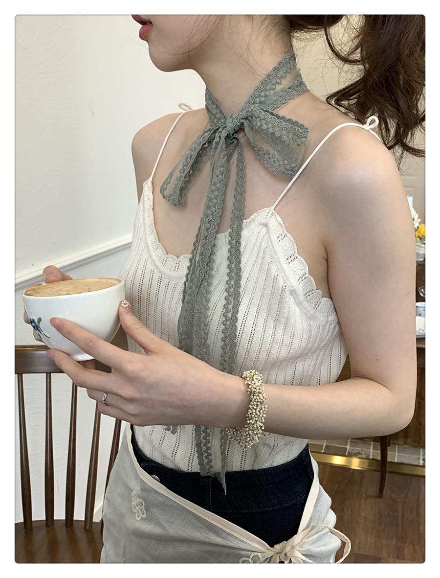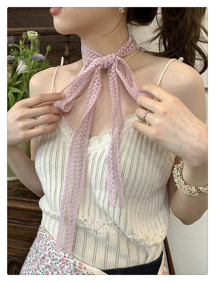 Bufanda de niña de cinta de encaje retro francés, nuevo estilo de primavera y verano, lazo para bolsa, banda para el cabello, elegante bufanda decorativa larga