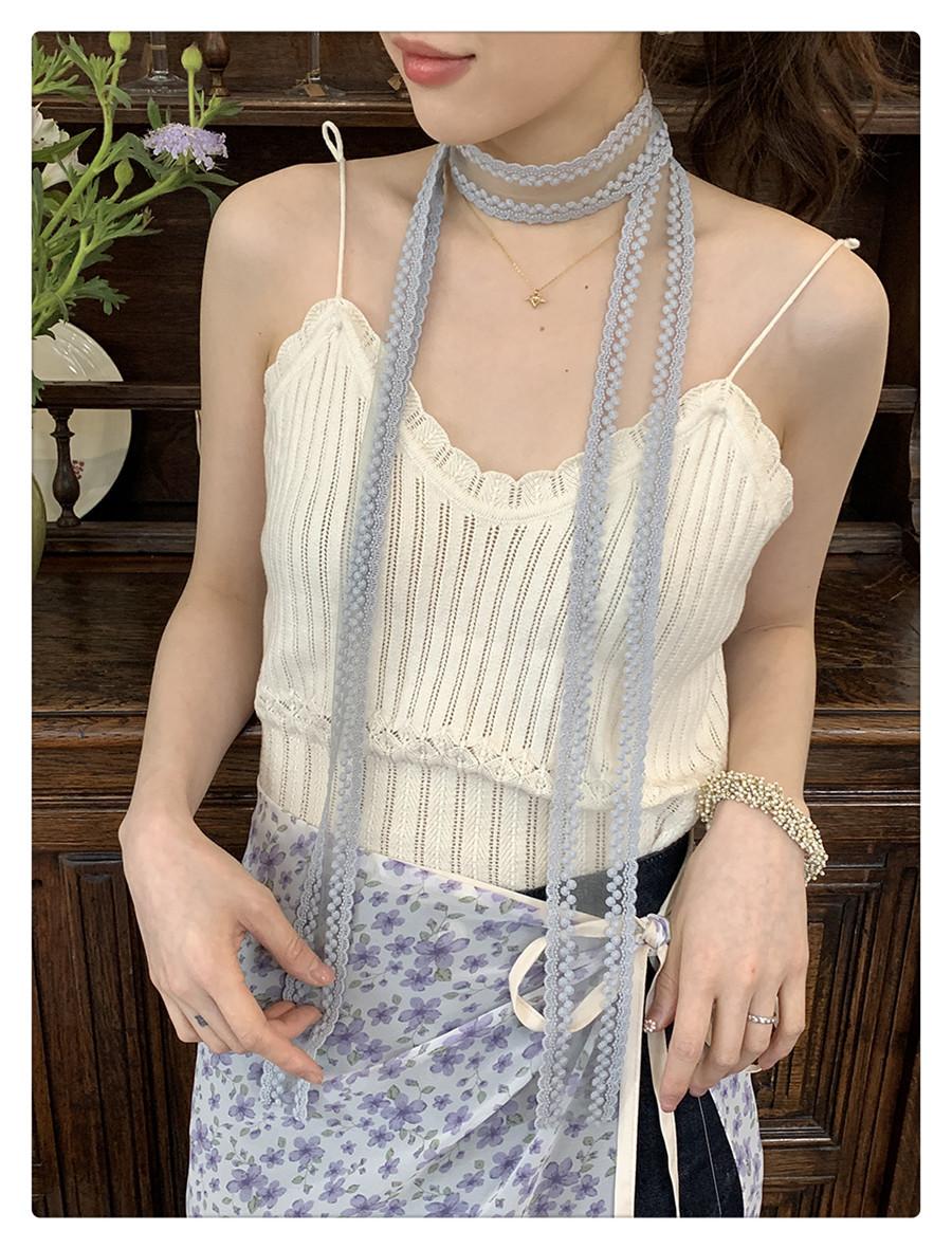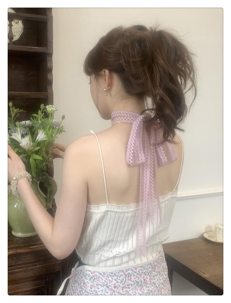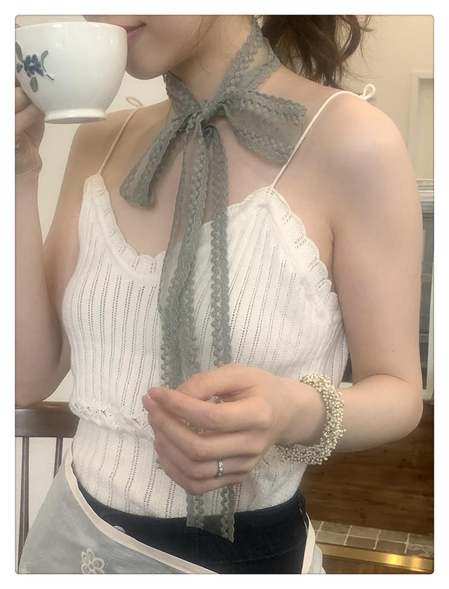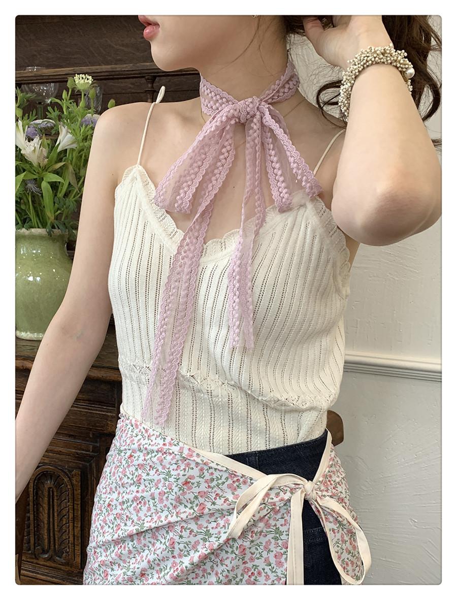 Bufanda de niña de cinta de encaje retro francés, nuevo estilo de primavera y verano, lazo para bolsa, banda para el cabello, elegante bufanda decorativa larga