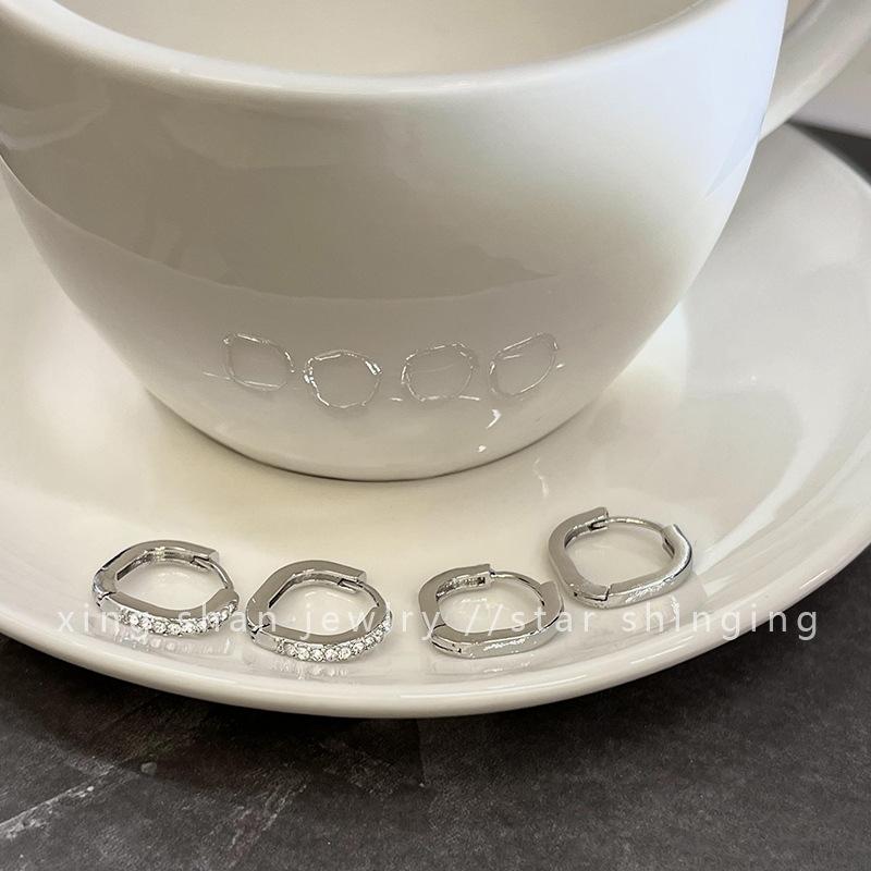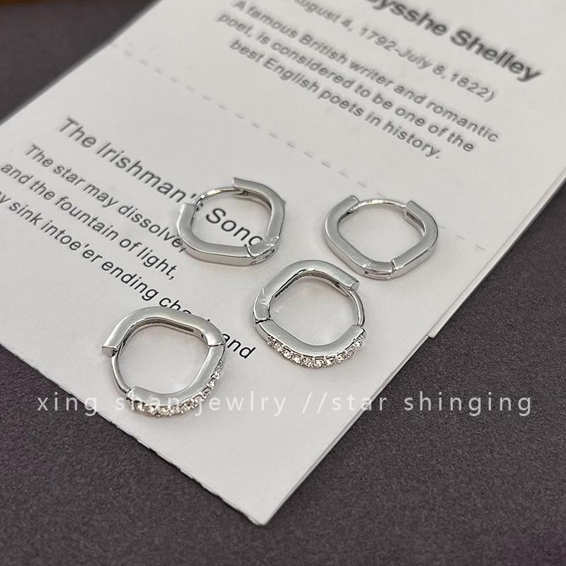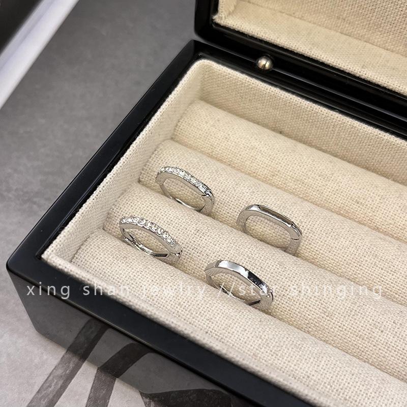 Nuevo estilo elegante, pendientes cuadrados de cuatro piezas, pendientes con hebilla, pendientes circulares de plata que combinan con todo, pendientes de viento frío