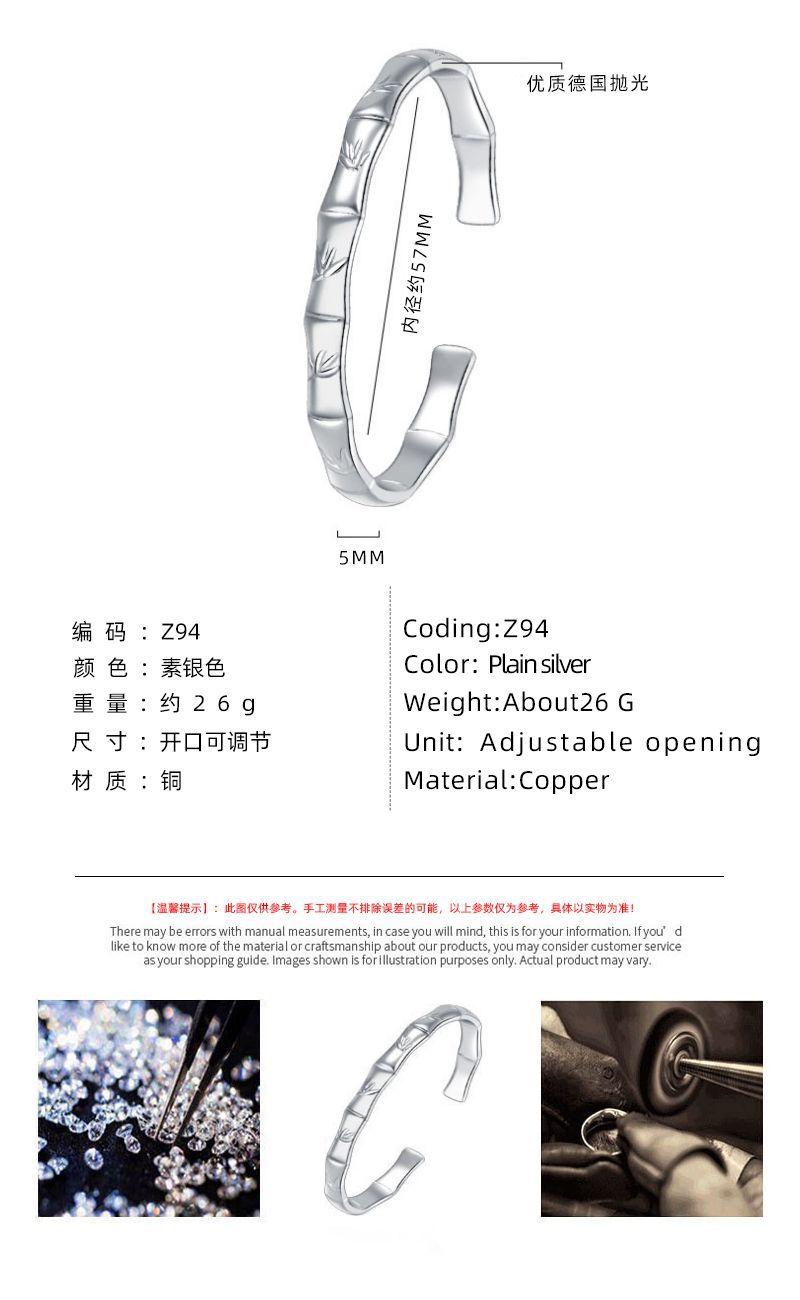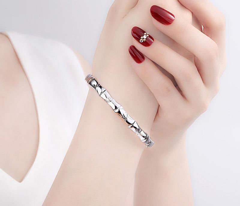 Pulsera de bambú dulce y fresca de moda para mujer, pulsera moderna, sencilla, abierta y brillante.