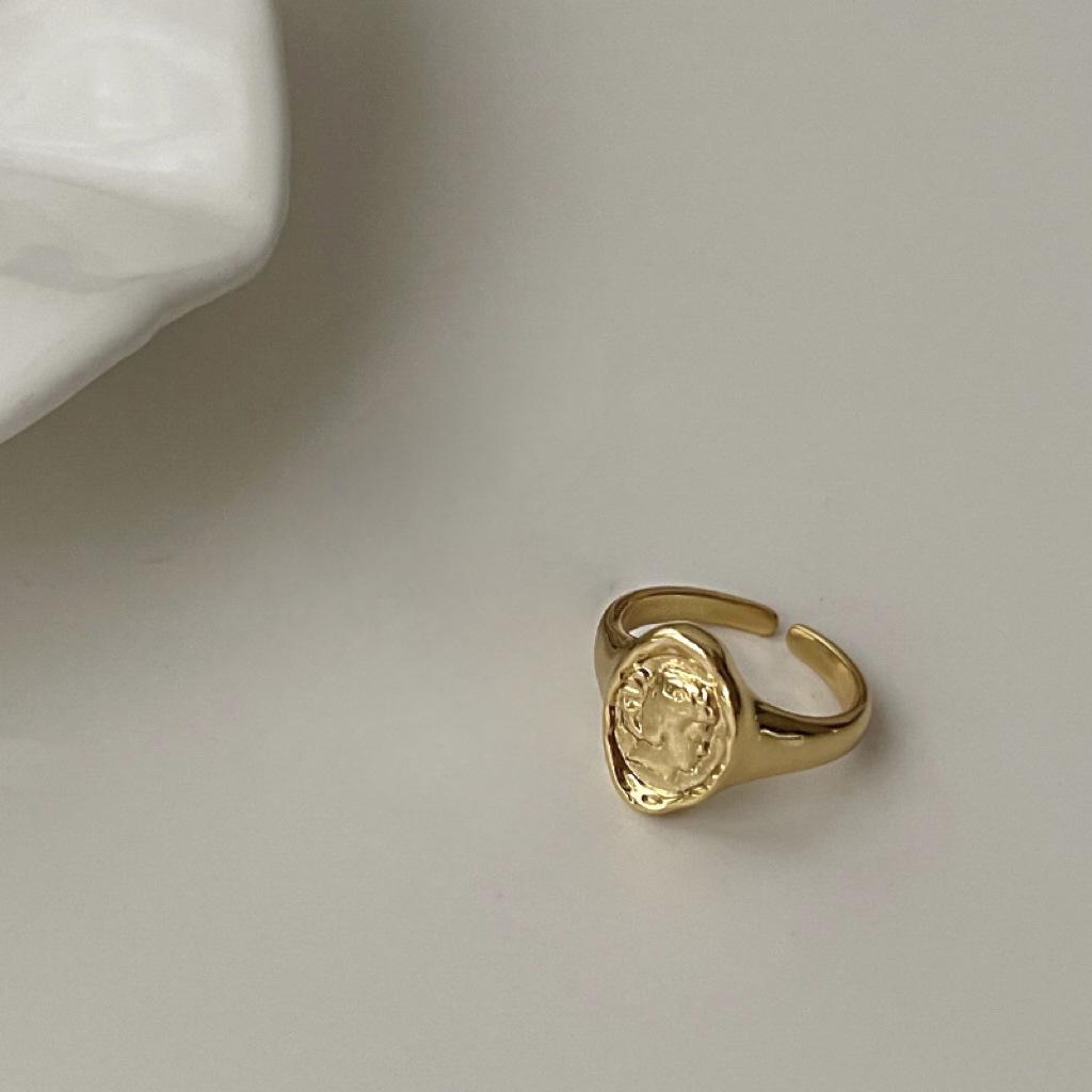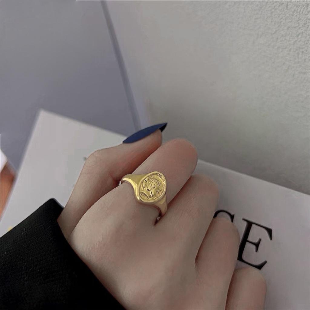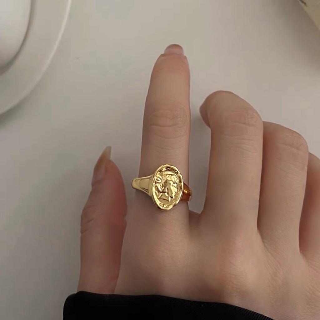 Anillo de nicho de metal con relieve frío, anillo abierto para el dedo índice, anillo elegante francés retro de alta calidad para mujer