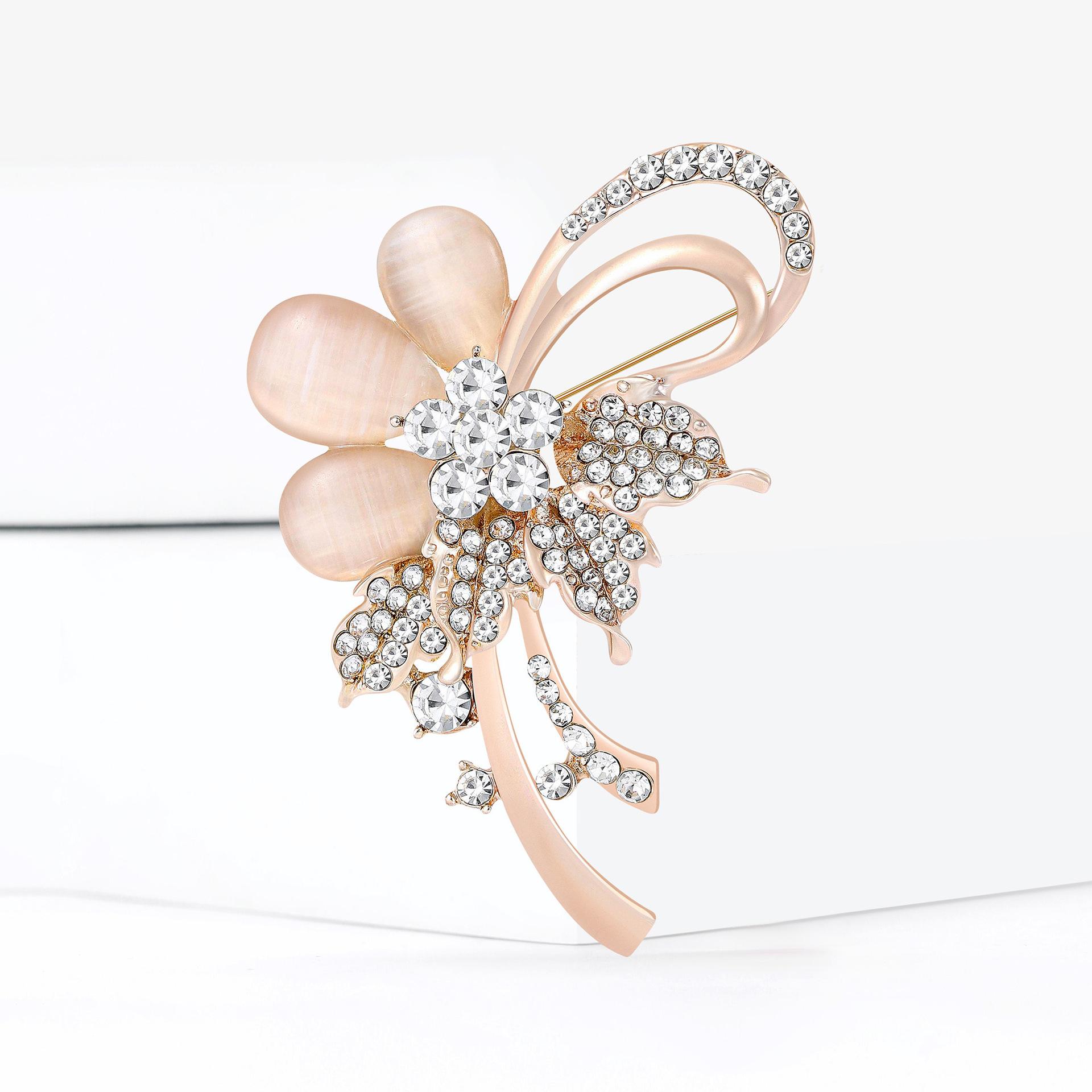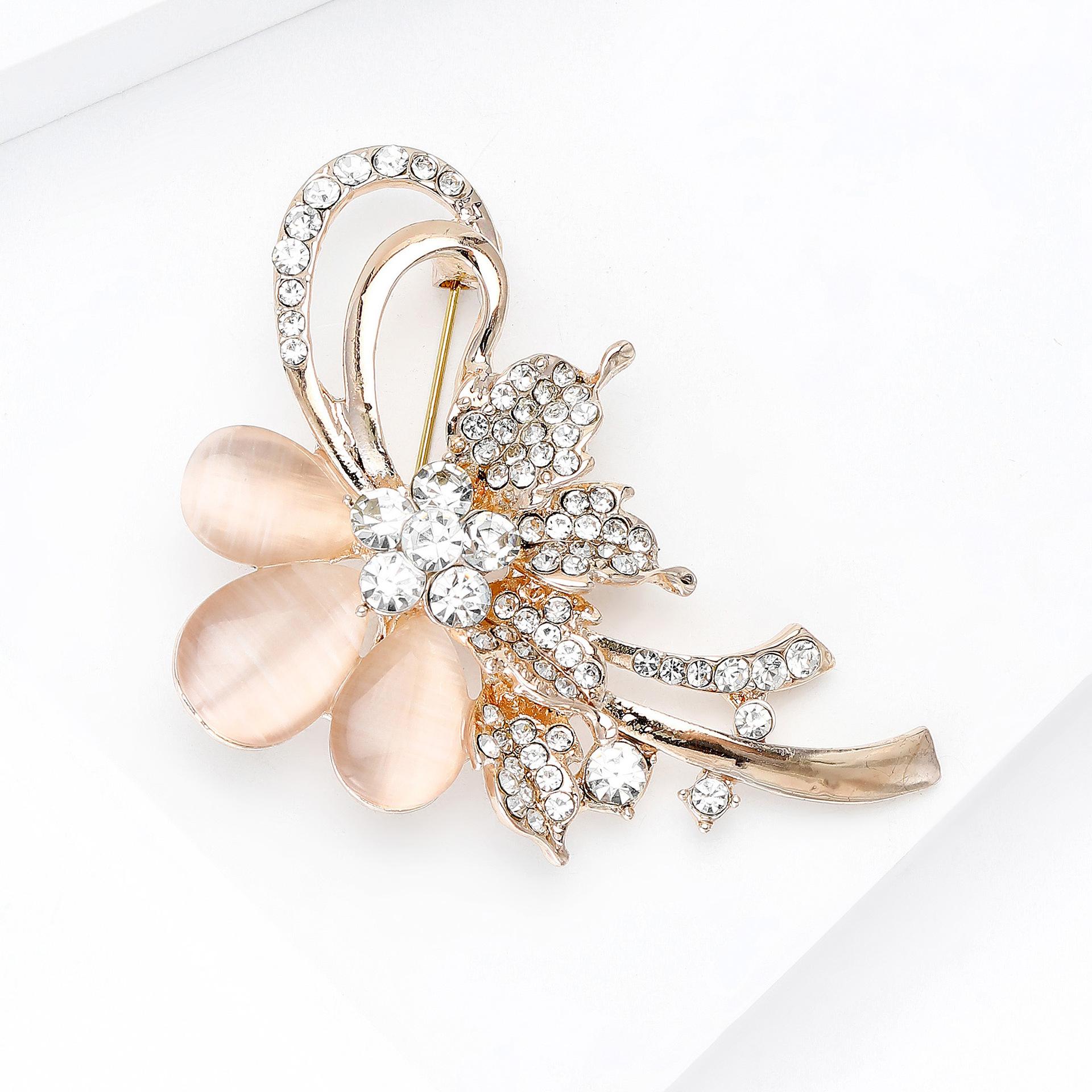 Elegante broche creativo de flor de ojo de gato, accesorio de ropa de lujo ligero de alta gama, ramillete antideslumbrante delicado y exquisito.