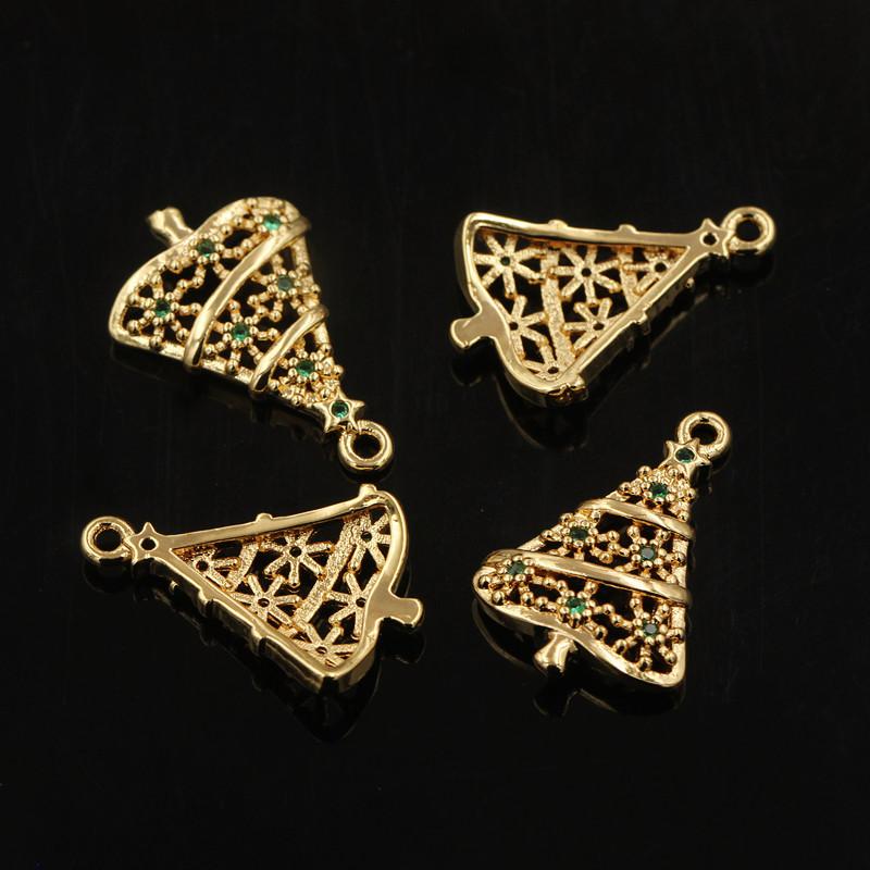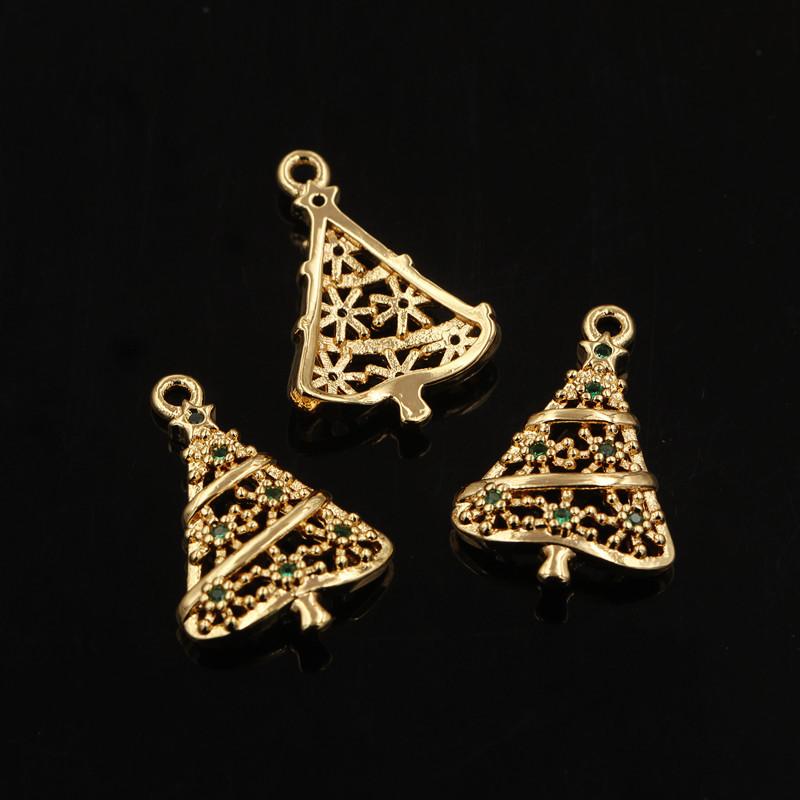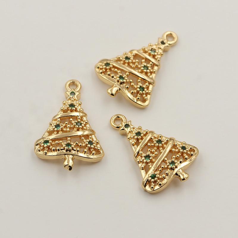 Cobre chapado en oro real circón Esmeralda árbol pequeño colgante pequeño colgante DIY pendientes pendientes accesorios de joyería