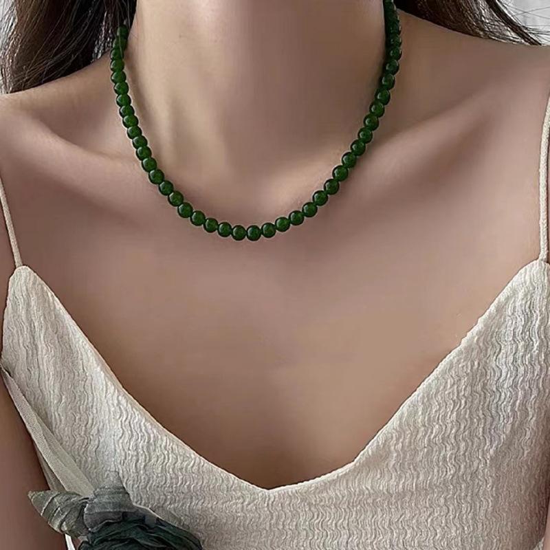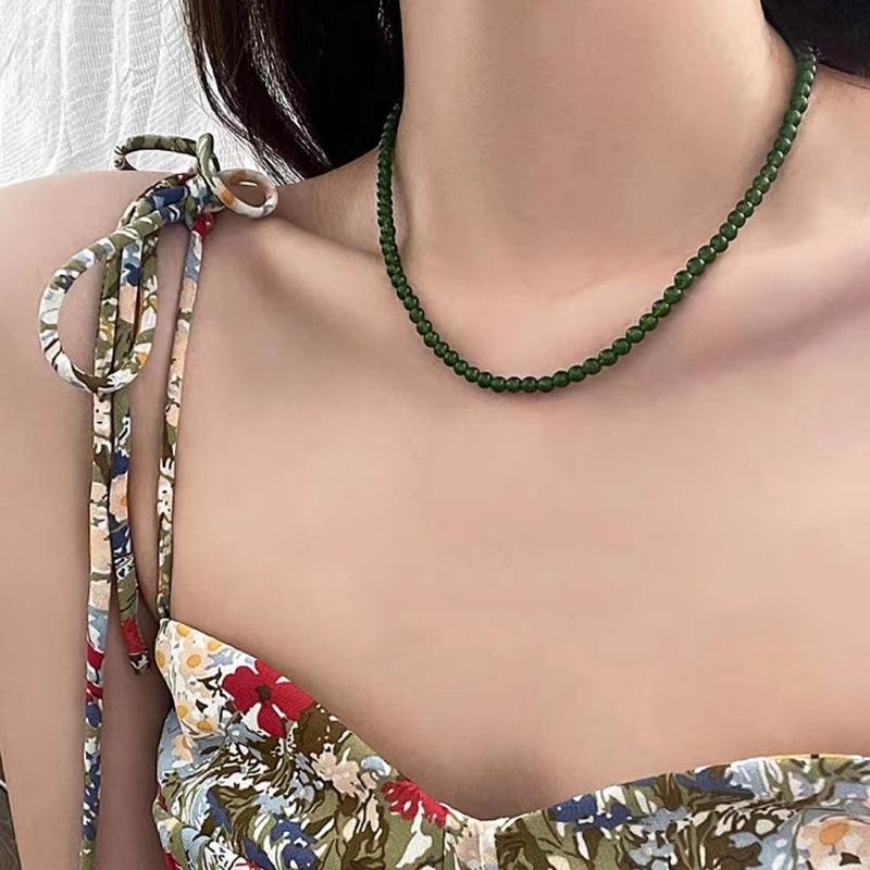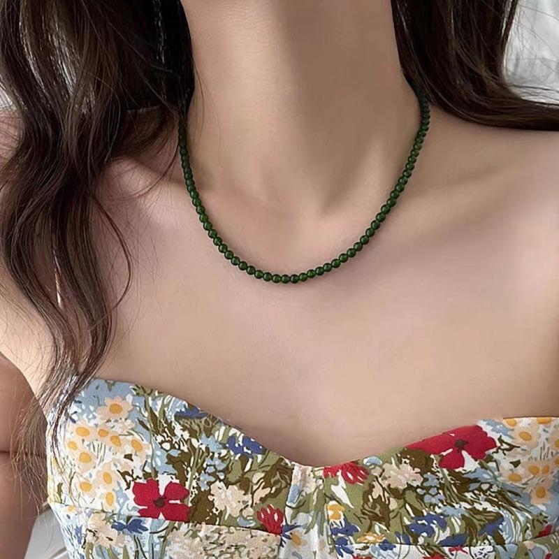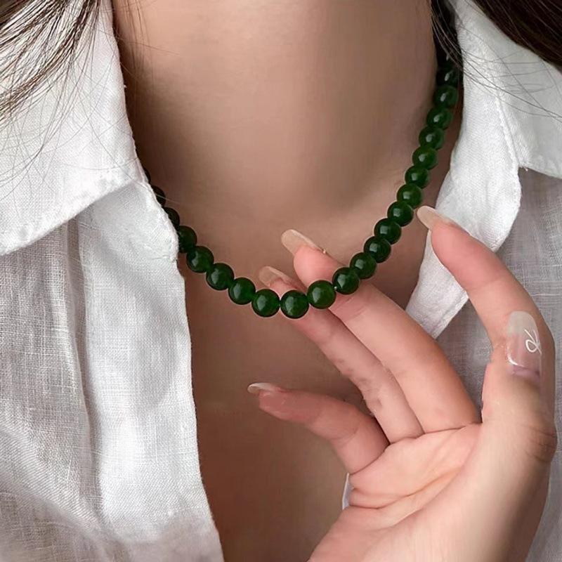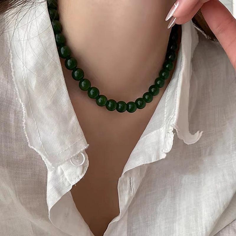 Nuevo collar de cadena de clavícula con cuentas verdes simples retro de estilo chino con diseño de temperamento de alto sentido de moda