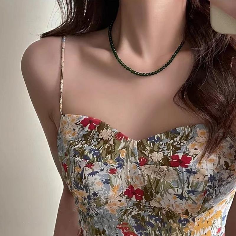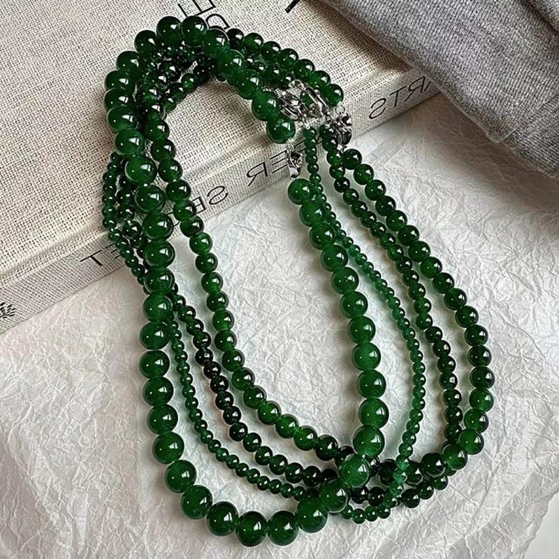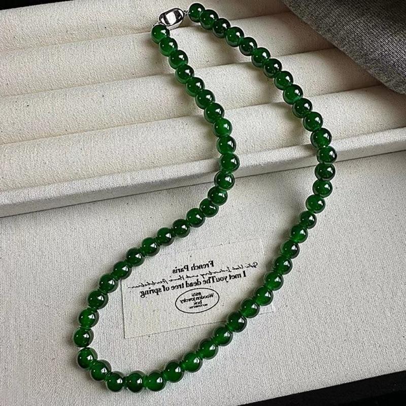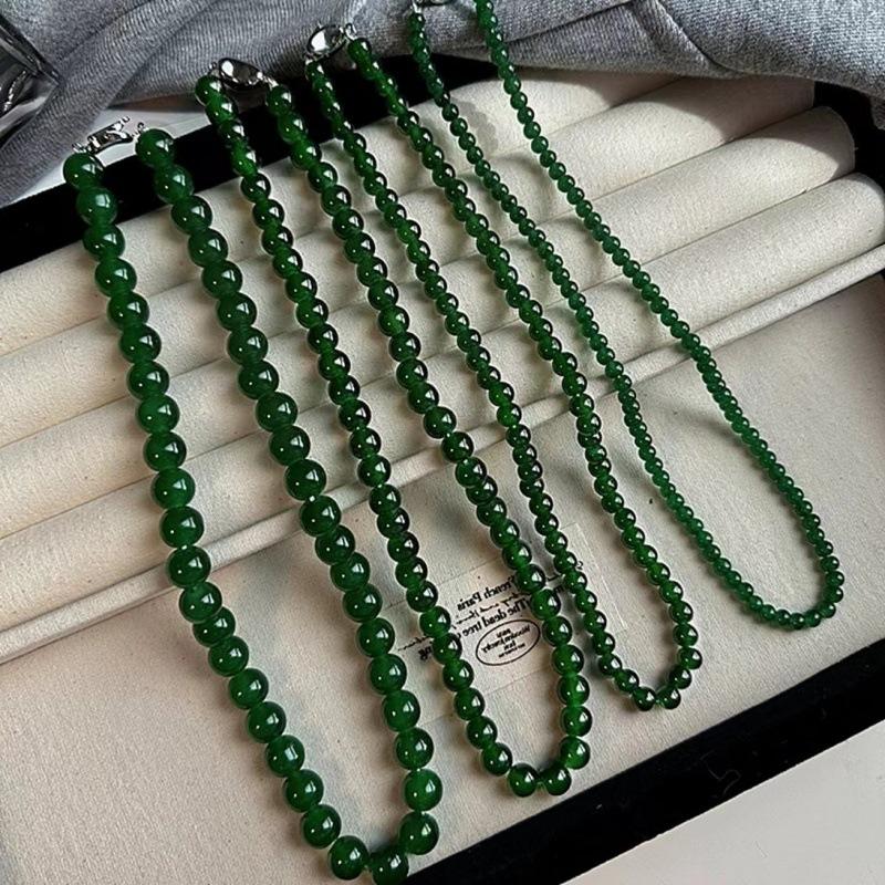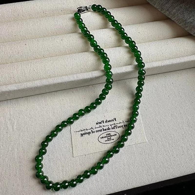 Nuevo collar de cadena de clavícula con cuentas verdes simples retro de estilo chino con diseño de temperamento de alto sentido de moda