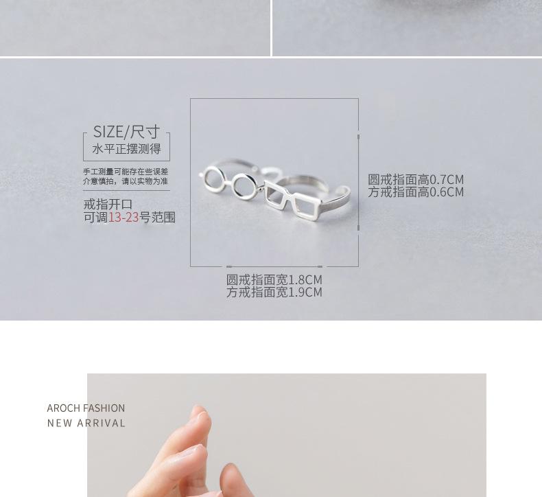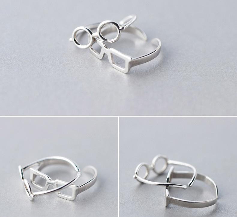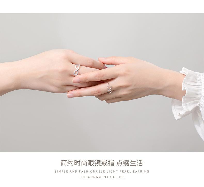 Anillo para Mujer Japonés y Coreano Simple Arte Anillo de Gafas Moda Pequeño Fresco Apertura Anillo de Cola Anillo de Pareja Nuevo Venta al por Mayor
