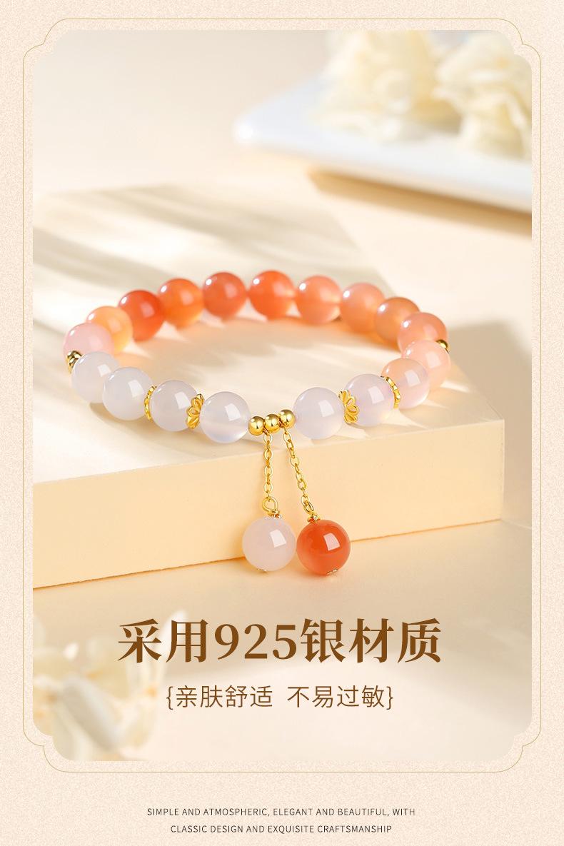 Compra Pulsera Min Cantonesa de Plata Esterlina Ágata Roja Carmesí Melocotón Pulsera con Cuentas Degradadas Femenina Estilo Nacional Regalo de Alta Gama para Novia al por mayor en Joom.pro