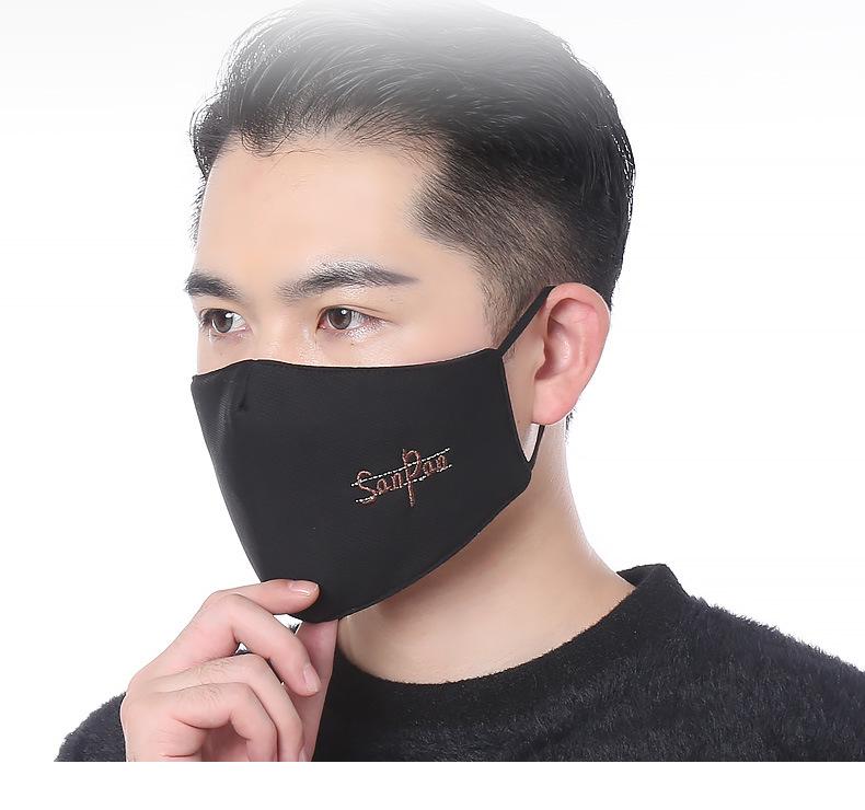 Nueva máscara de terciopelo diamante plana cálida de invierno para hombre, moderna con letras bordadas, máscara antipolvo de doble capa para mujer