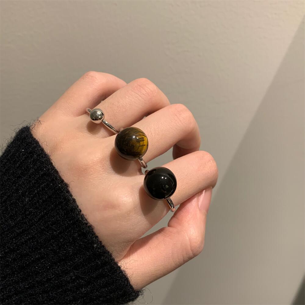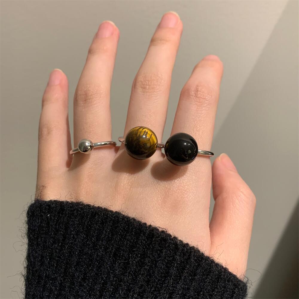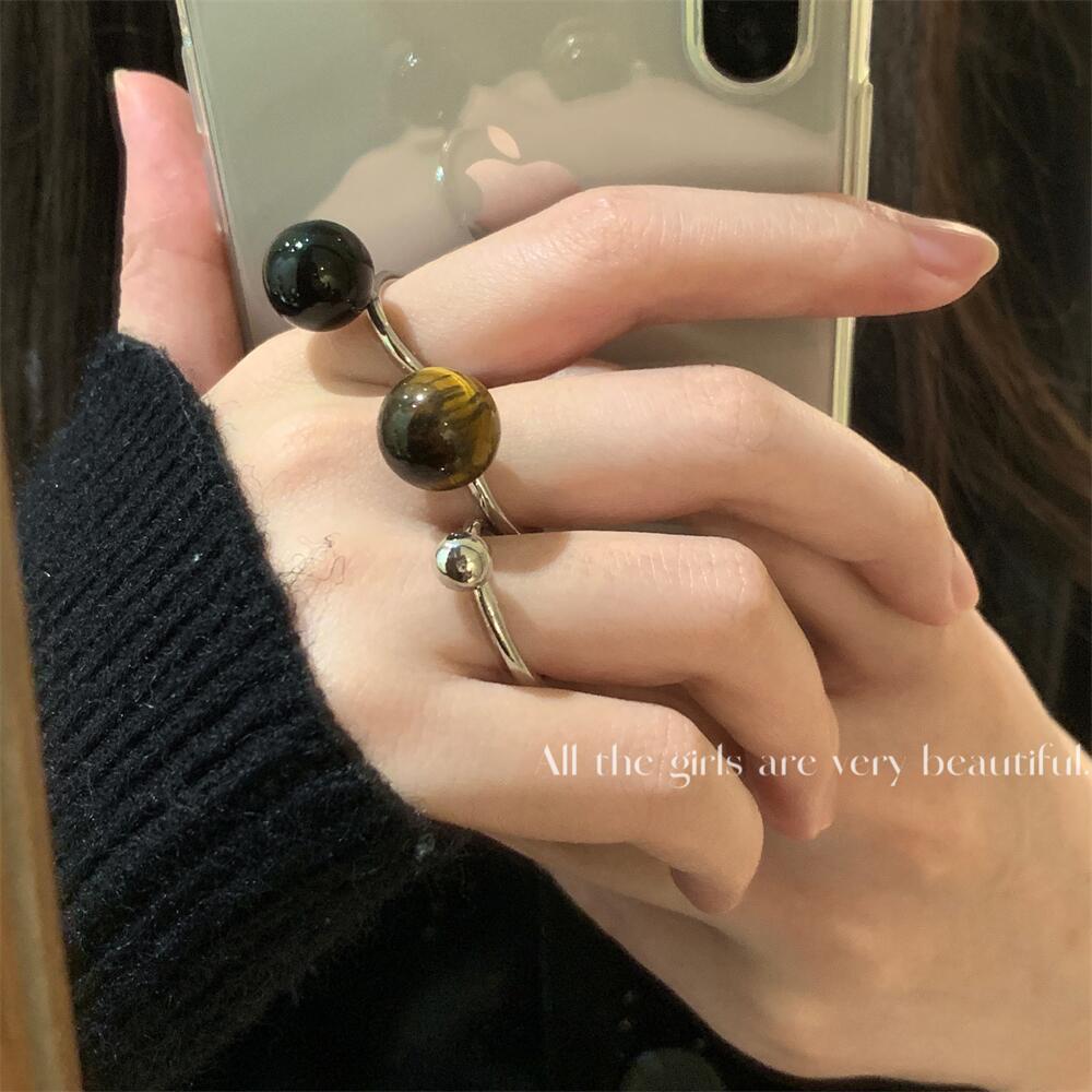Compra Anillo abierto con piedra de ojo de tigre francés, estilo frío, bola plegable de alta calidad, anillo de perla negra, anillo para dedo índice al por mayor en Joom.pro