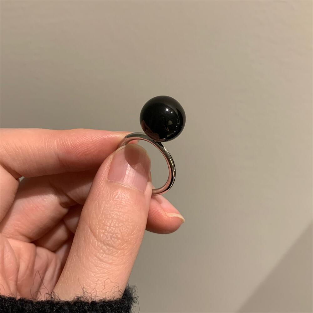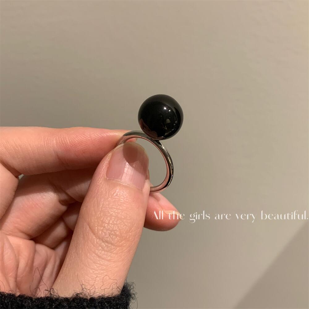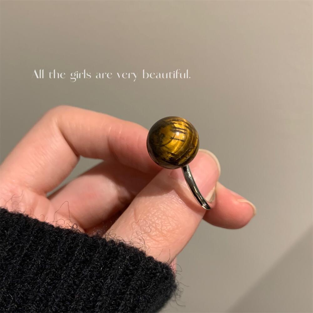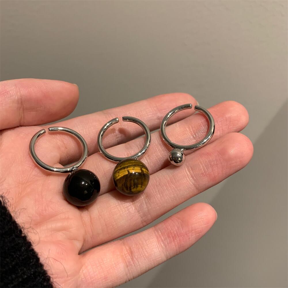 Compra Anillo abierto con piedra de ojo de tigre francés, estilo frío, bola plegable de alta calidad, anillo de perla negra, anillo para dedo índice al por mayor en Joom.pro