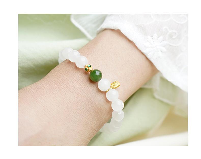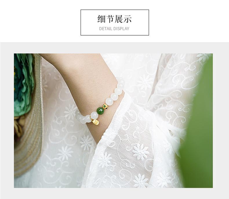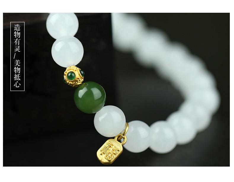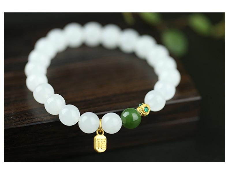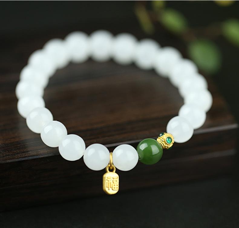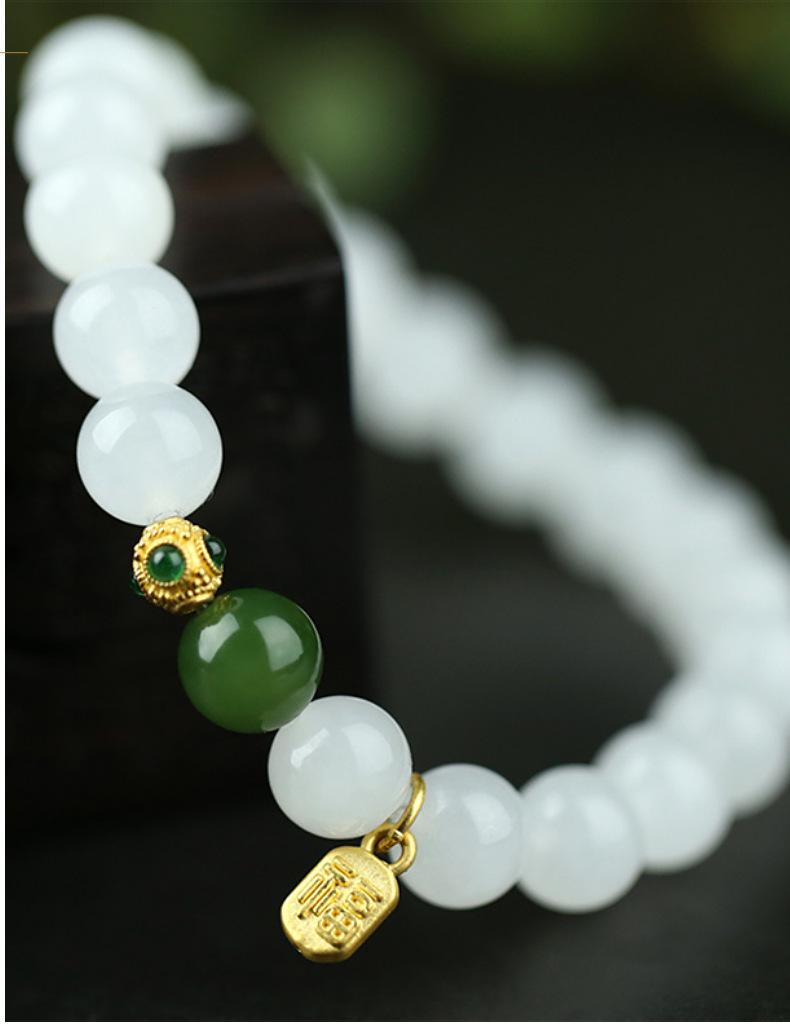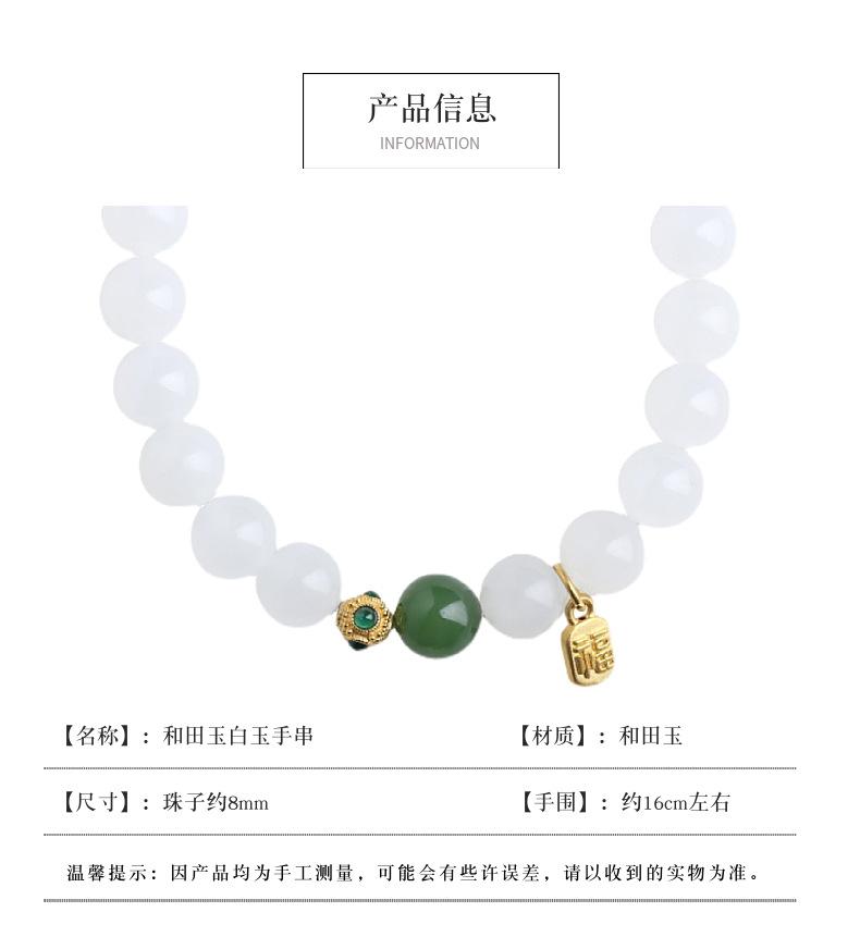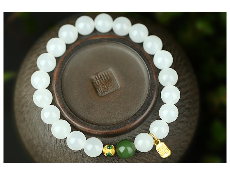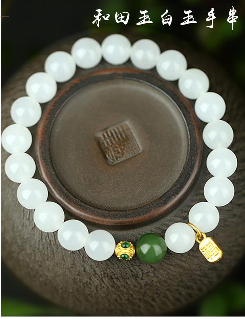 Pulsera de Jade Blanco Jade Hetian para Mujer, Cuentas de Jade, Cuentas Redondas, Pulsera de Jaspe, Pulsera Simple y Elegante, Pulsera al por Mayor