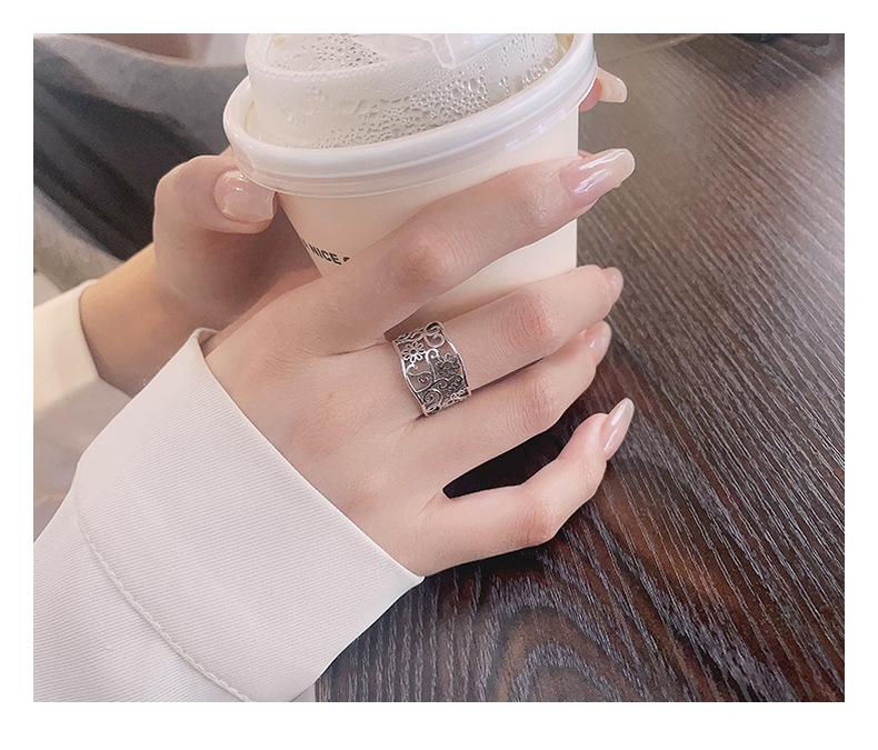 Anillo abierto Chao Sheng s925 de plata esterlina con diseño retro creativo de patrón hueco, pequeño anillo de estilo étnico fresco