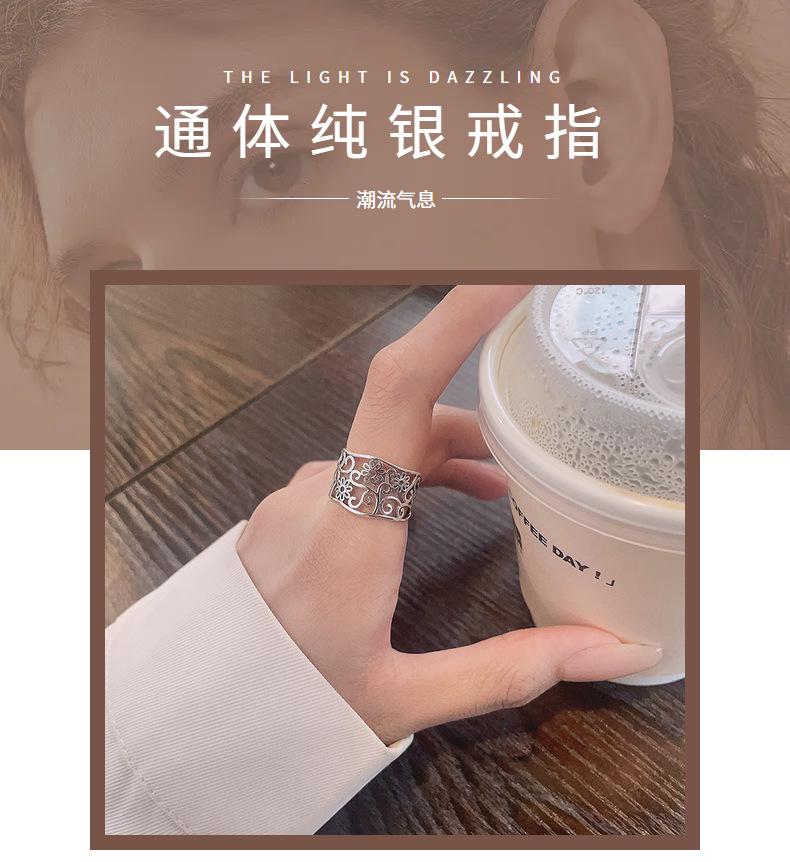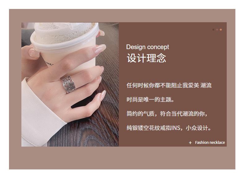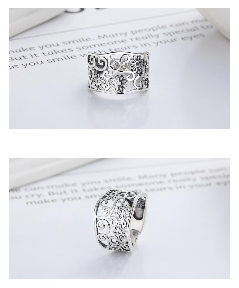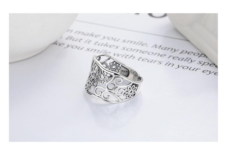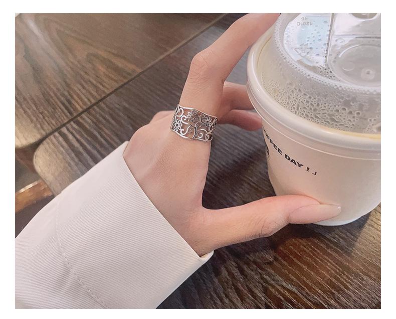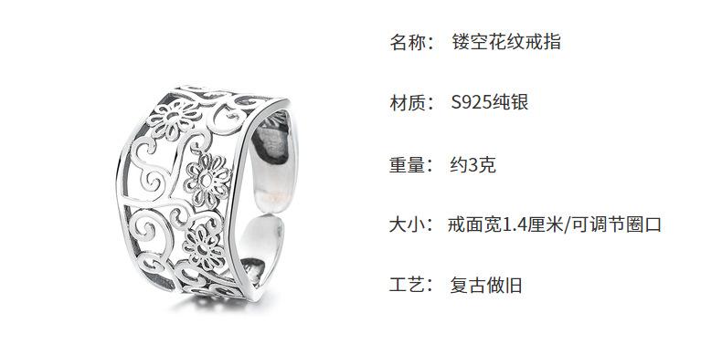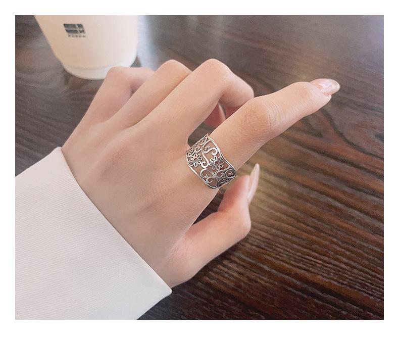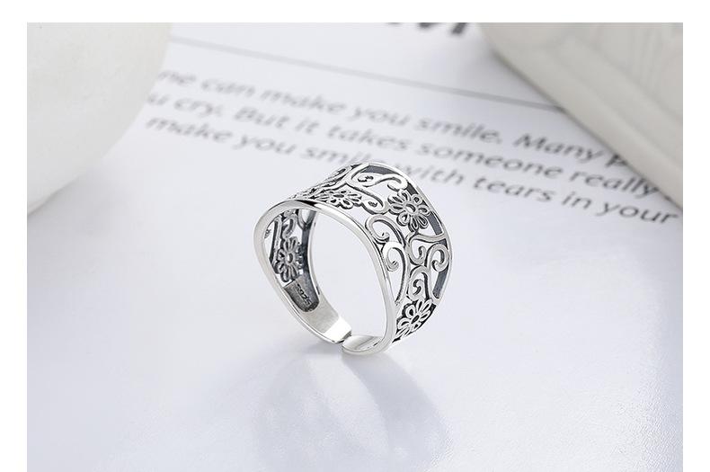 Compra Anillo abierto Chao Sheng s925 de plata esterlina con diseño retro creativo de patrón hueco, pequeño anillo de estilo étnico fresco al por mayor en Joom.pro