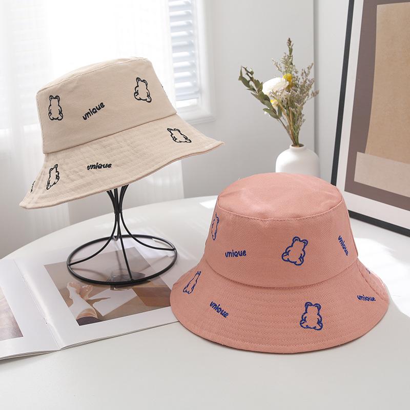 Sombrero de Pescador para Mujer Nuevo Sombrero Lindo de Oso para Hombre Casual Versátil Sombrilla Sombrero Cubo de Moda Sombrero de Protección Solar Verano