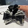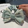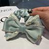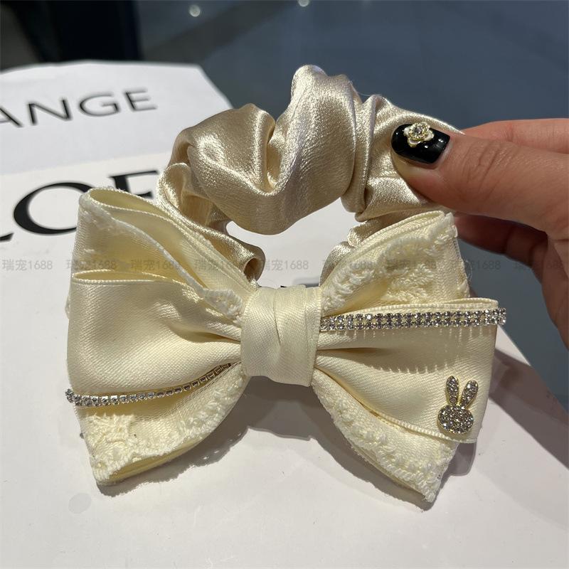Anillo para el cabello de intestino grueso con lazo de pedrería de malla Cuerda para el cabello para mujer Estilo coreano Conejo Alta elasticidad Coleta Diadema Punto
