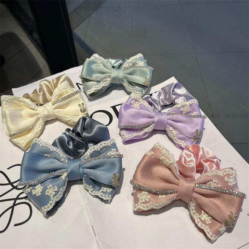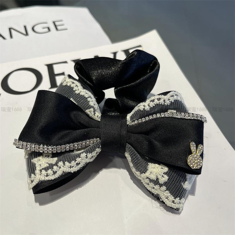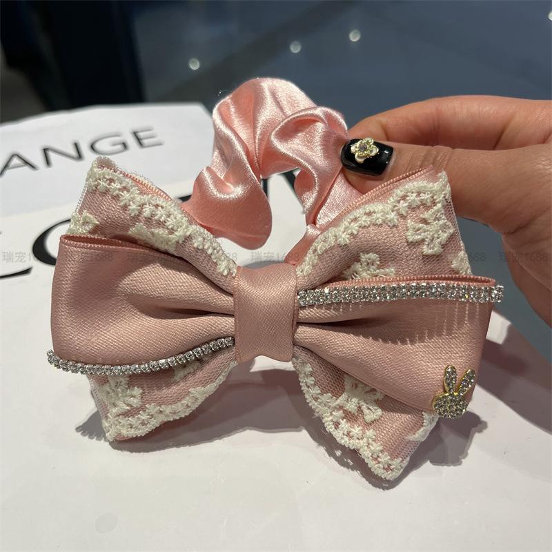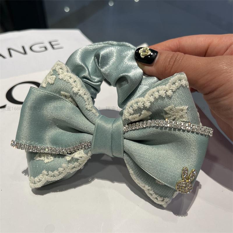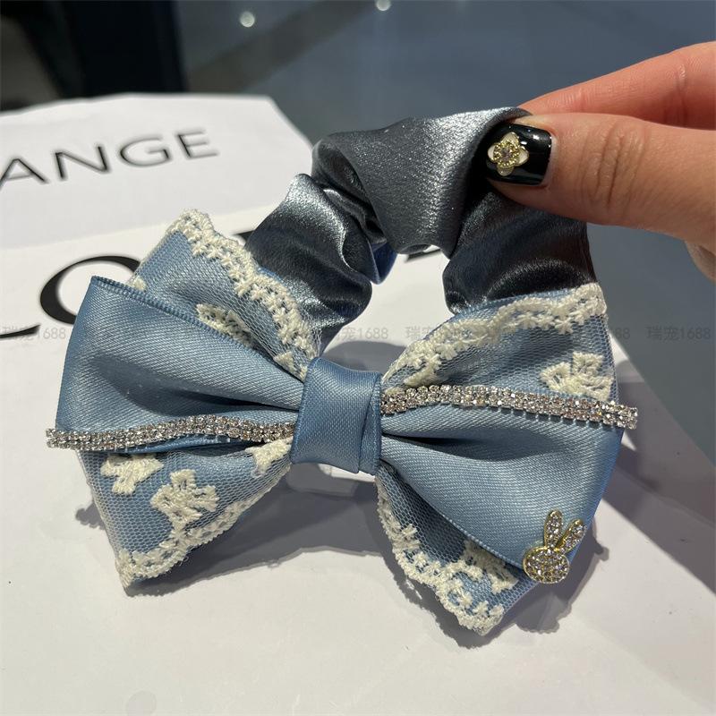 Compra Anillo para el cabello de intestino grueso con lazo de pedrería de malla Cuerda para el cabello para mujer Estilo coreano Conejo Alta elasticidad Coleta Diadema Punto al por mayor en Joom.pro