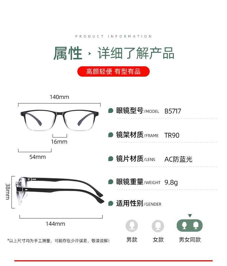 Nuevas gafas anti-luz azul para estudiantes TR90, montura completa, retro, pequeñas y frescas, que se pueden equipar con gafas para miopía.