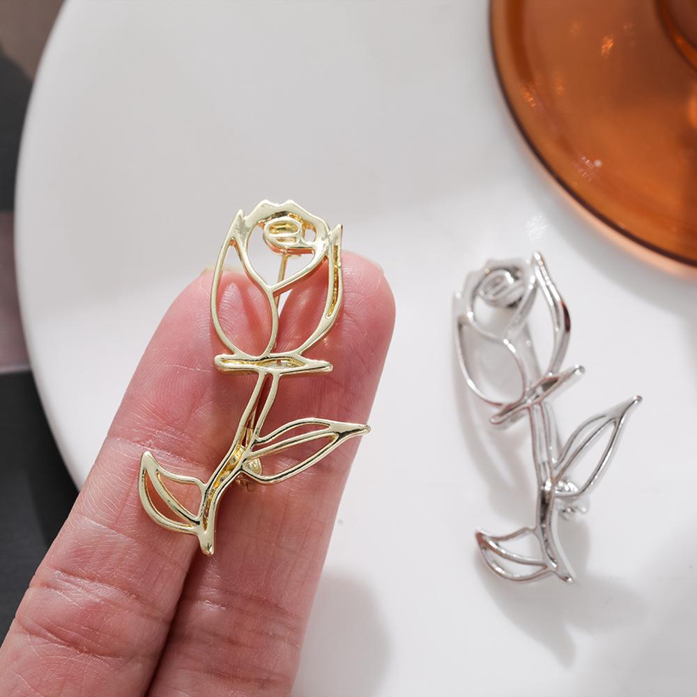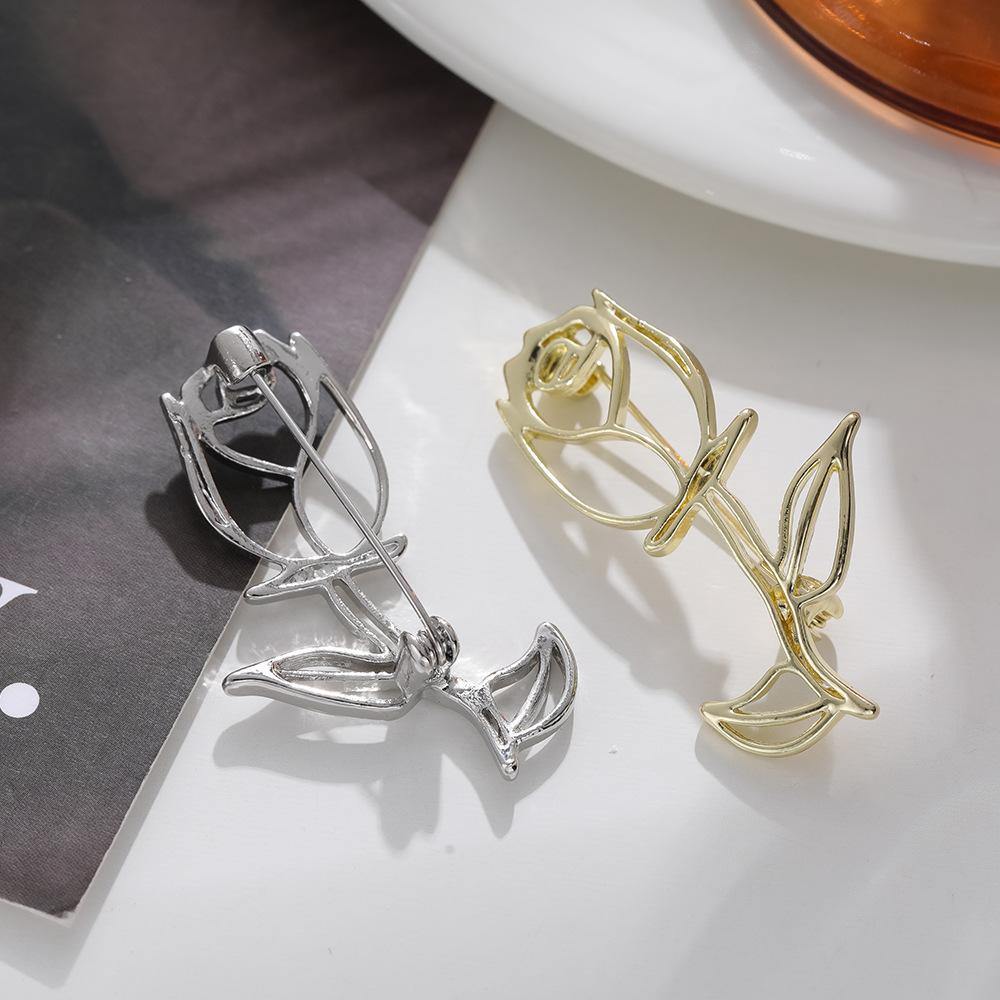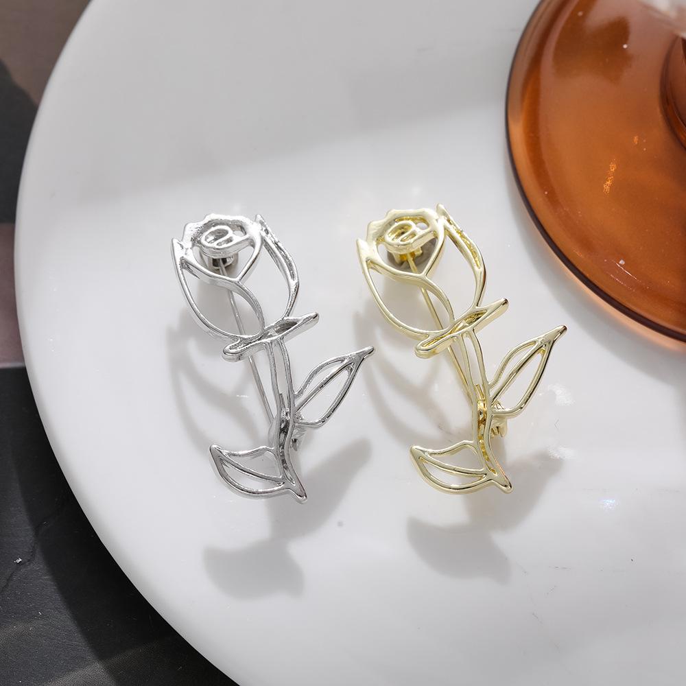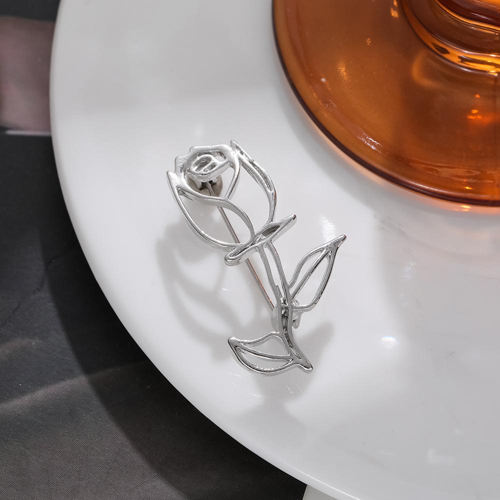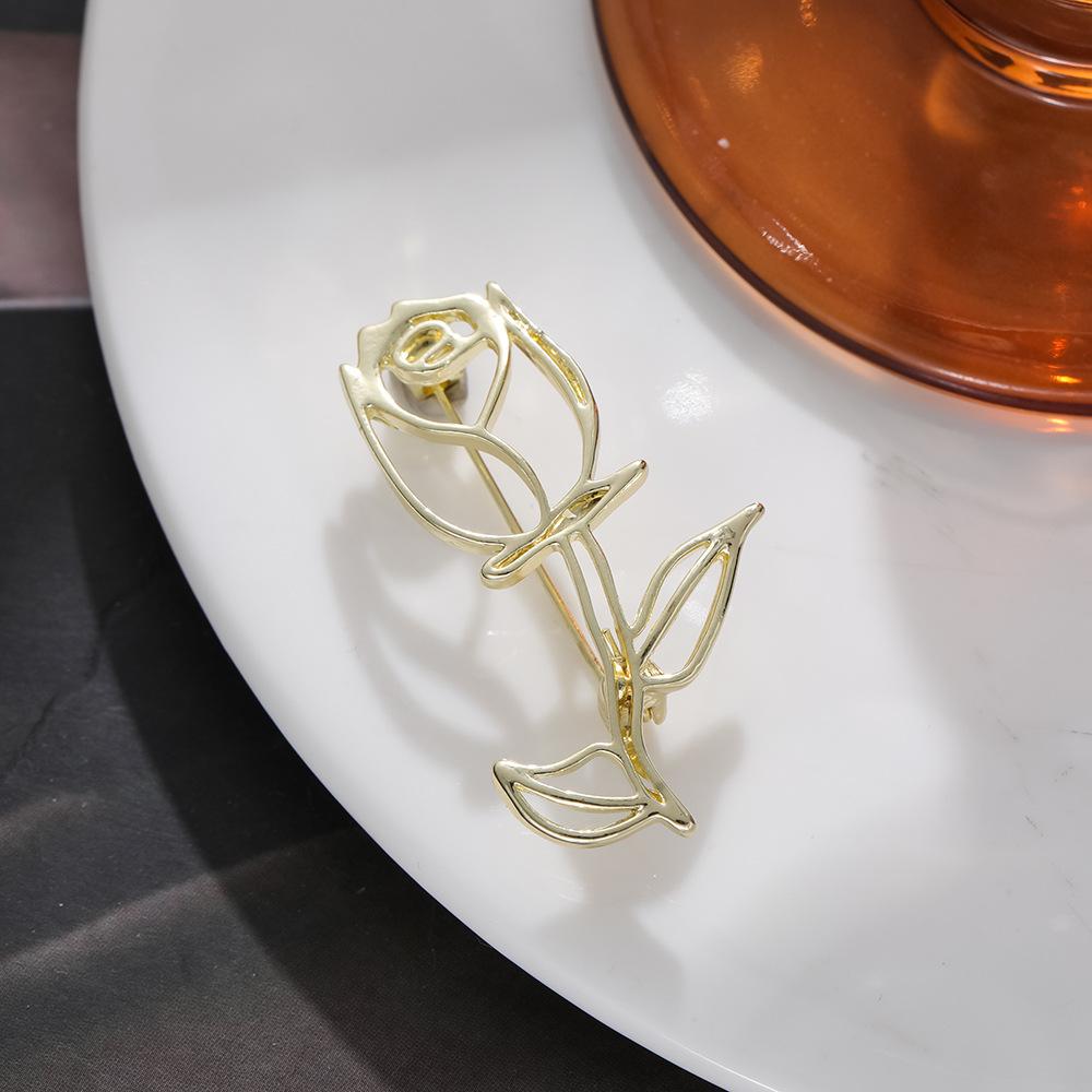 Broche de rosa hueco de alta calidad de moda simple, personalidad femenina, temperamento, abrigo, cárdigan, ramillete, alfiler exquisito
