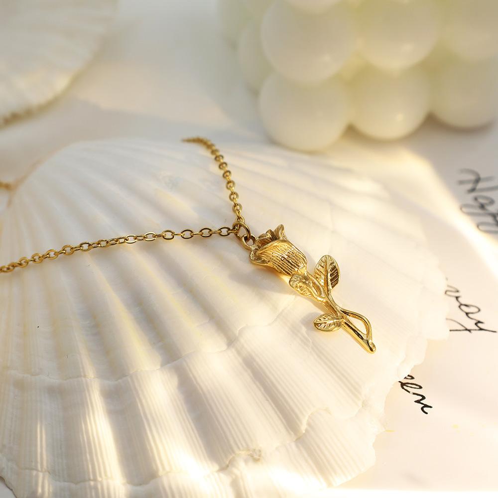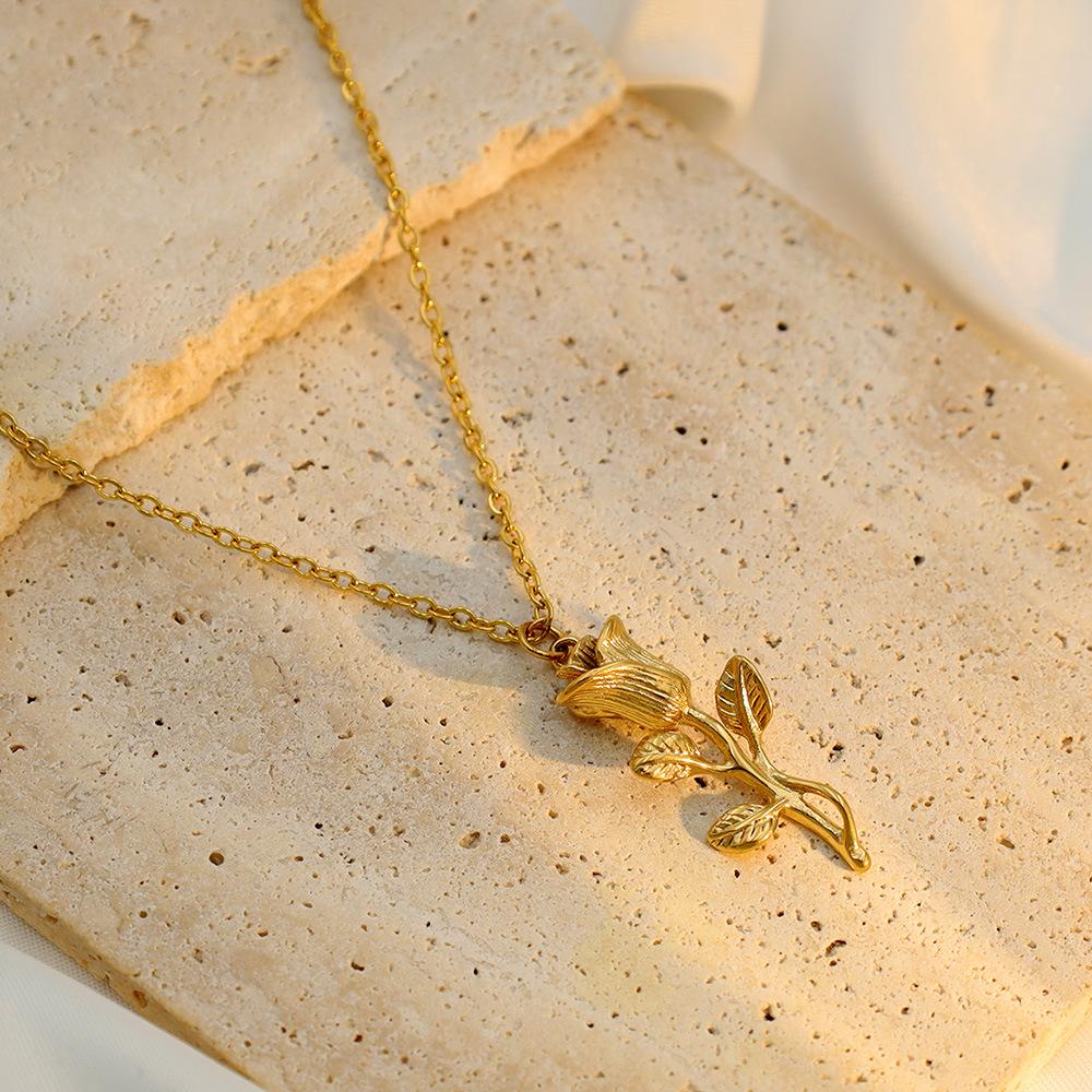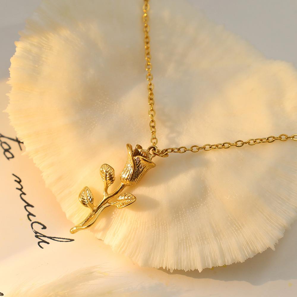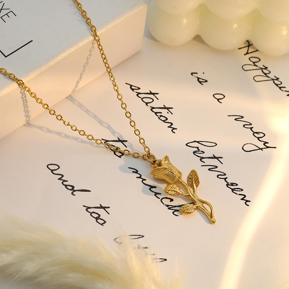 Compra Collar con colgante de rosa tridimensional chapado en oro de 18 quilates de alta calidad con cadena de clavícula de acero inoxidable personalizada de joyería transfronteriza para mujer al por mayor en Joom.pro
