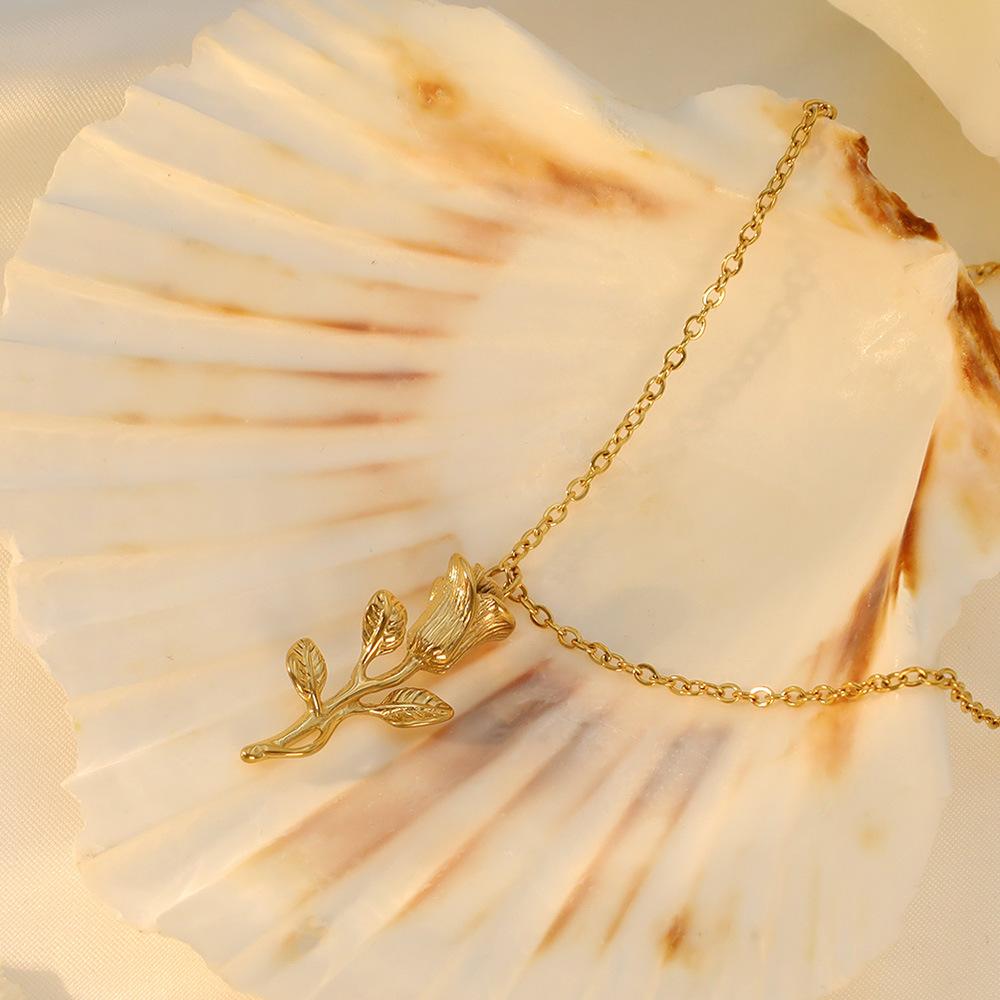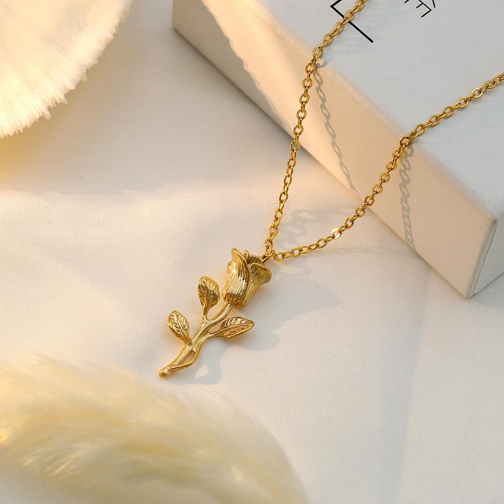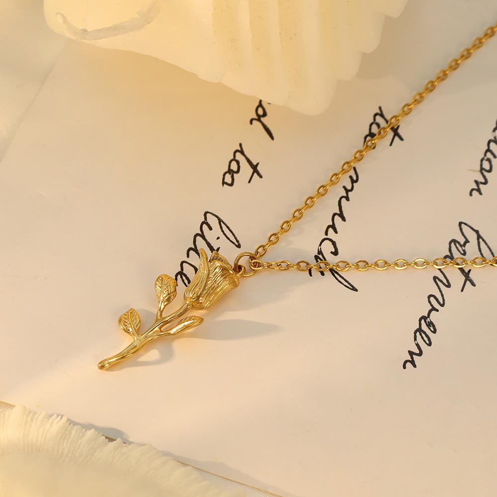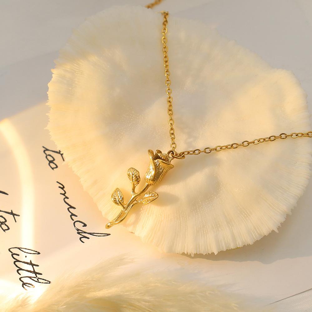 Compra Collar con colgante de rosa tridimensional chapado en oro de 18 quilates de alta calidad con cadena de clavícula de acero inoxidable personalizada de joyería transfronteriza para mujer al por mayor en Joom.pro