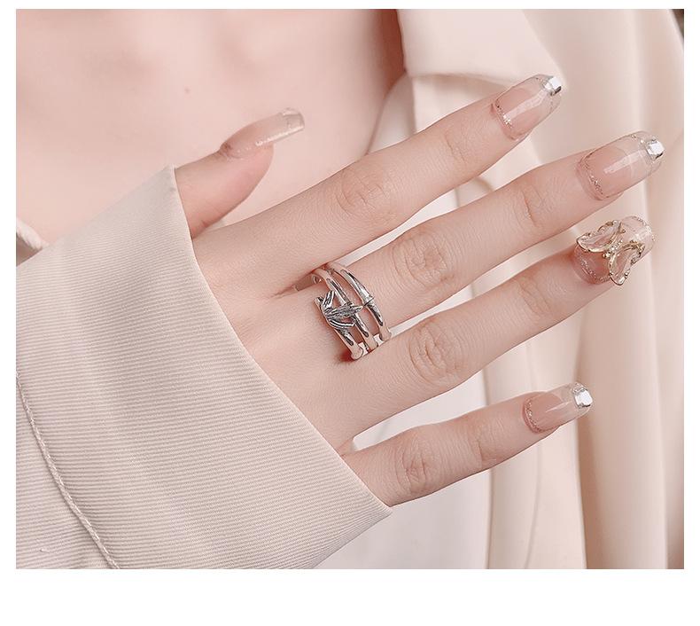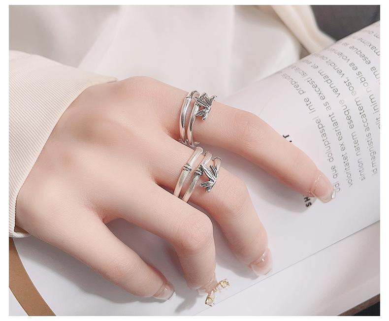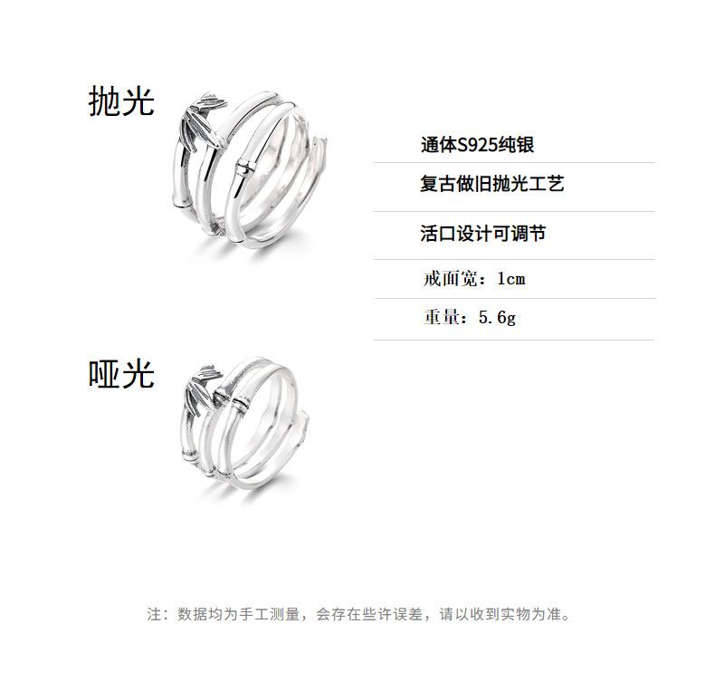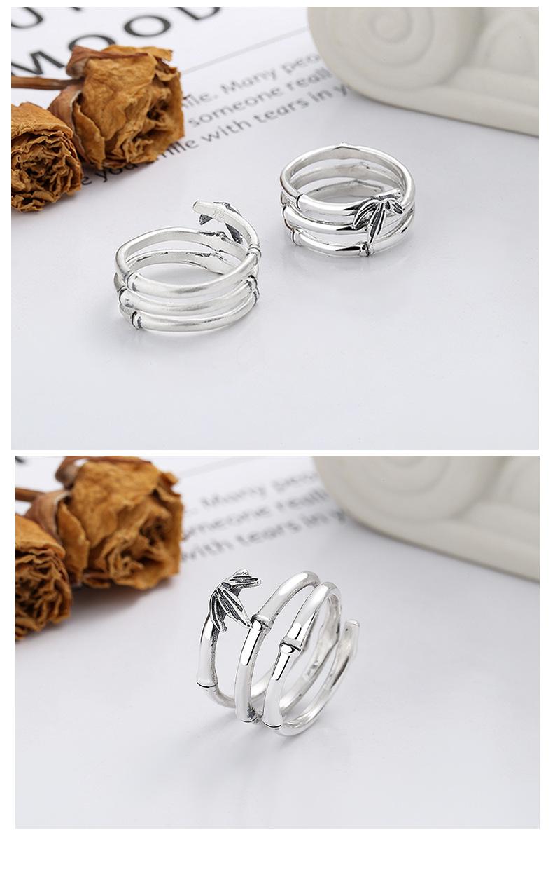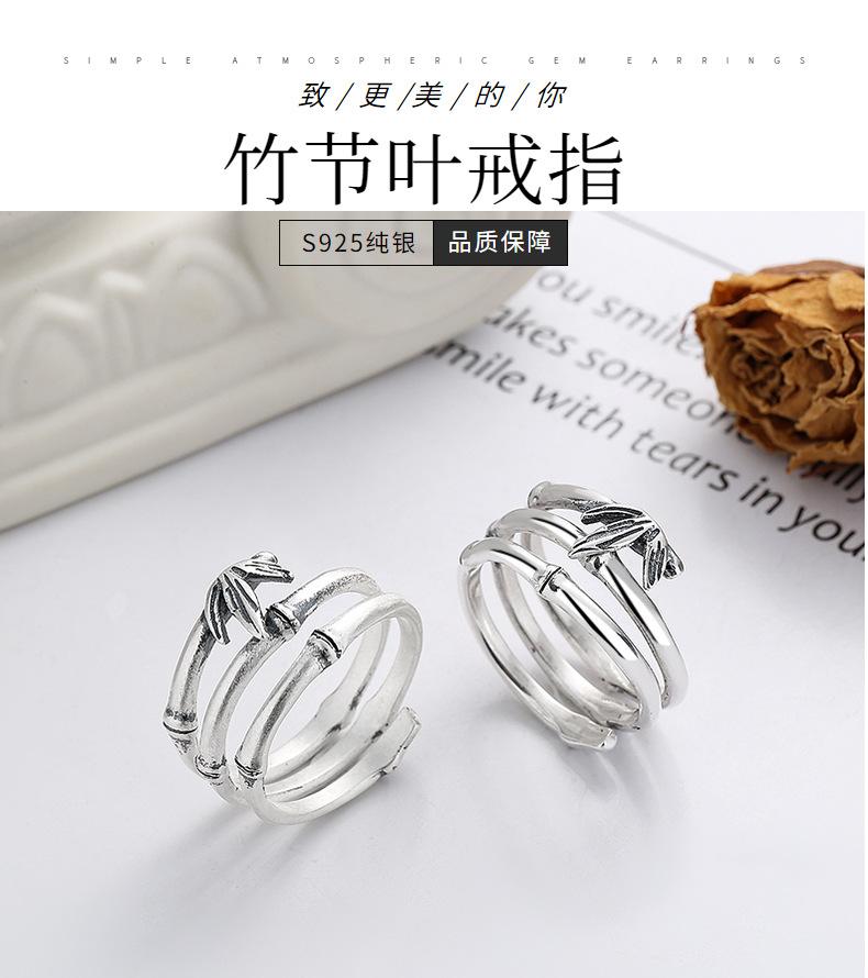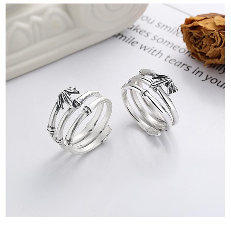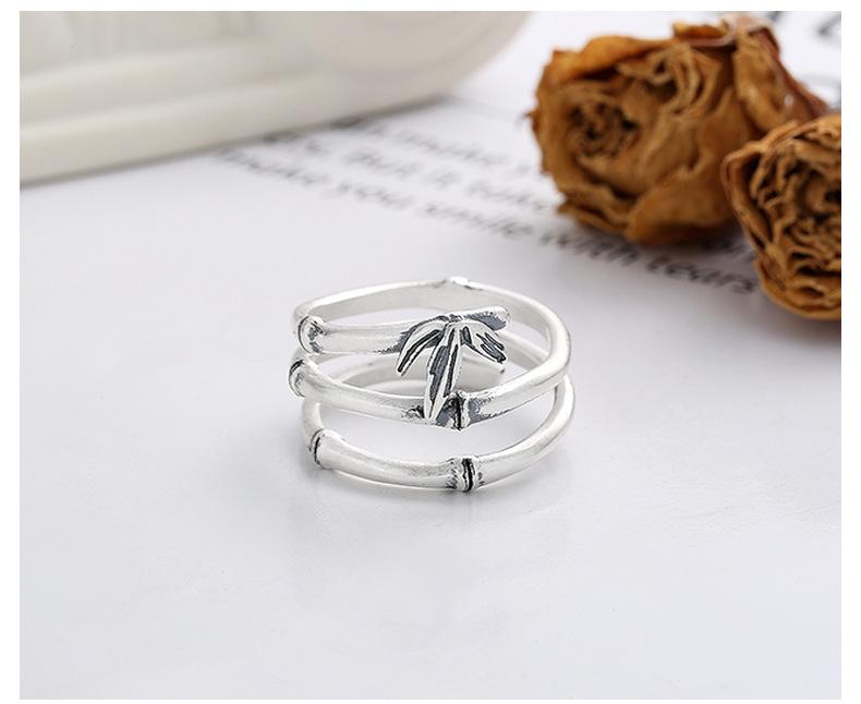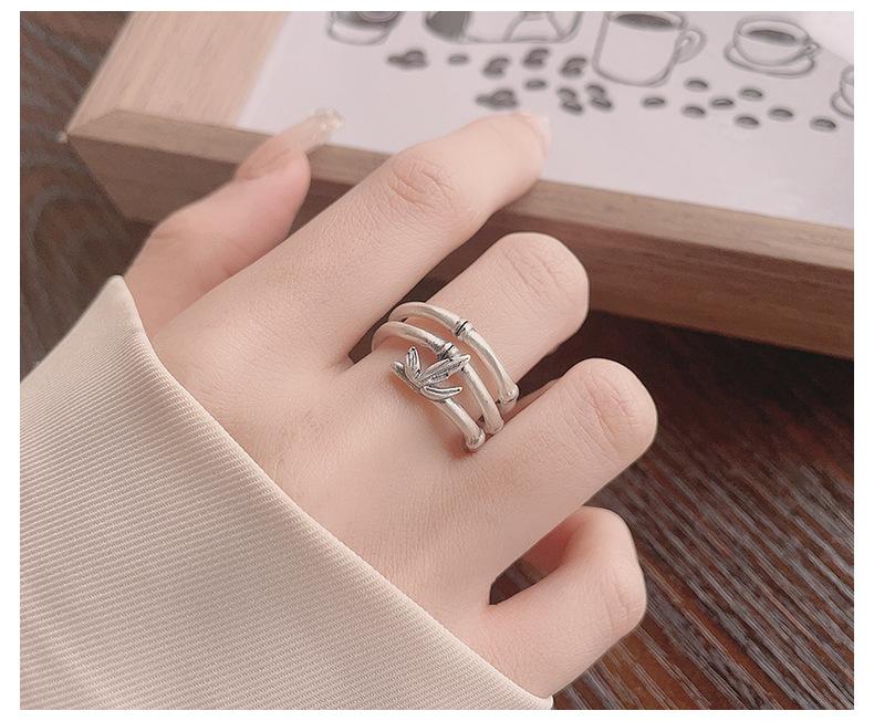 Yunchao Xuan Plata S925 Retro Estilo Pastoral Natural Hoja de Bambú Mate Personalizado Tendencia Diseño Creativo Anillo Abierto