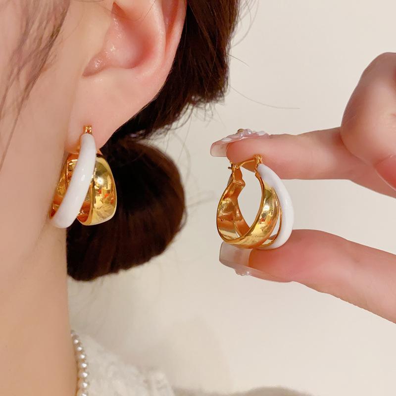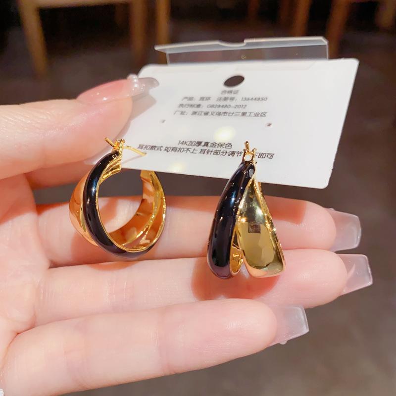 Black-oil U-shaped ear buckle (thick gold plating), White-oil U-shaped ear buckle (thick gold plating)